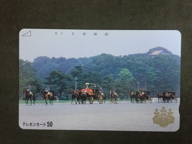 | ◎テレホンカード 「お召馬車と馬上の近衛士官 儀装馬車 五三の桐紋」50度数☆h1 | ||