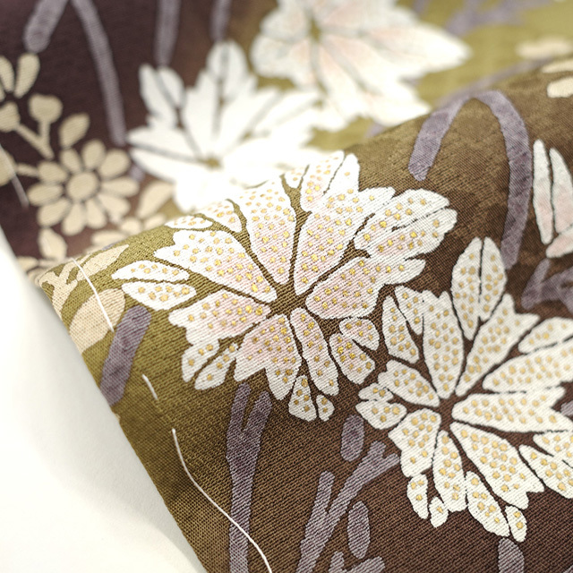 そこに、三日月にススキや楓・桔梗・萩など草花が染められています。