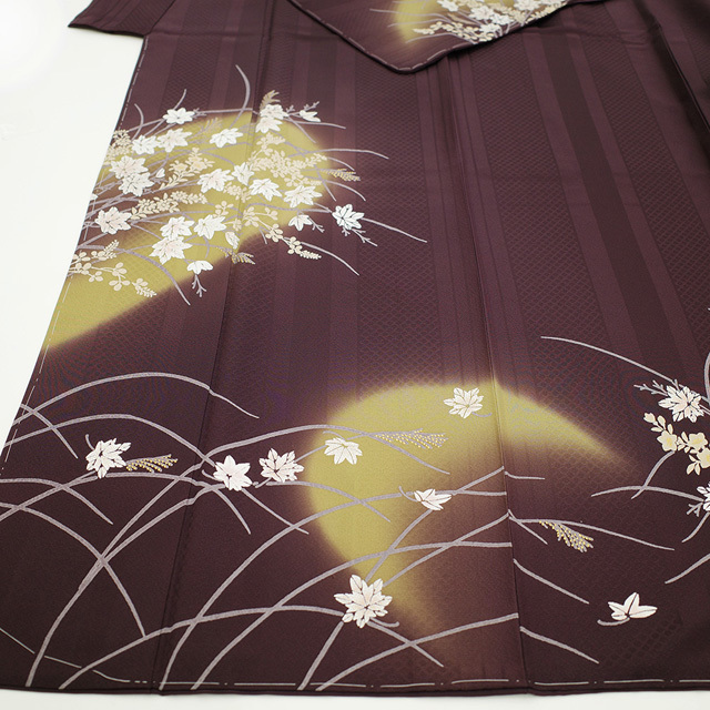 訪問着 袷 着物 正絹 濃紫 三日月 すすき 楓 フォーマル 新古品 仕立て上がり 身丈172 裄68.5 TLサイズ トールサイズ みやがわ sb12833