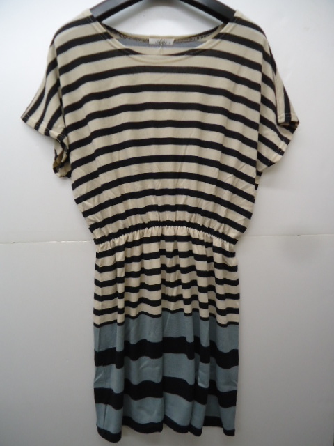【KCM】yng-42-M★新品未使用★【Ailes】フレンチスリーブ 半袖 チュニック M ブラック×ブルー ボーダー レディース