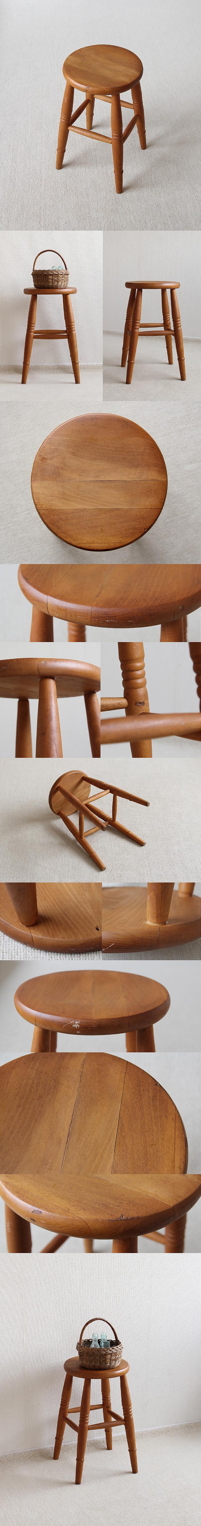 イギリス ヴィンテージ スツール 丸椅子 木製 カントリー 踏み台 家具「花台にも」V-593