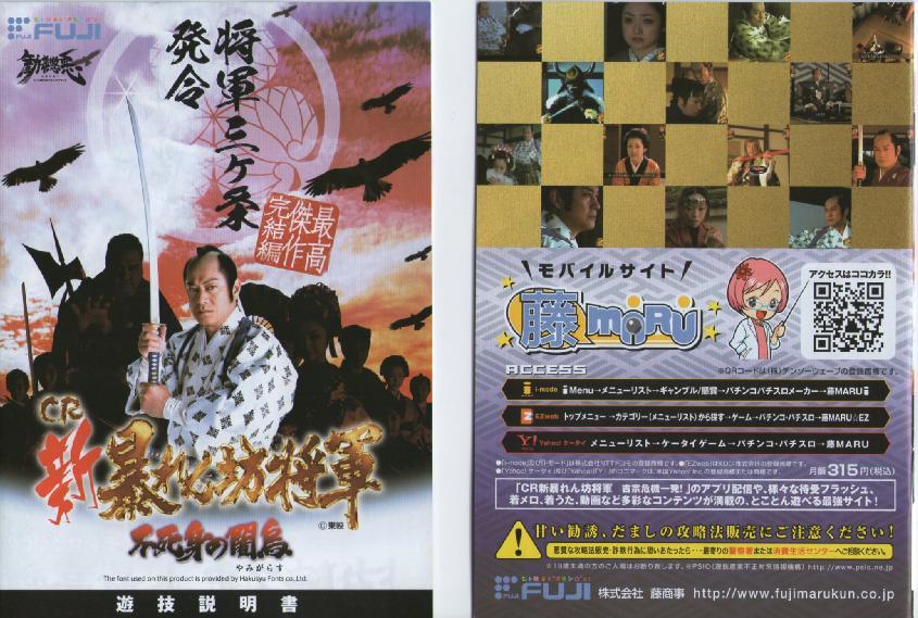藤商事(FUJI)の2011年導入のパチンコ台「CR新 暴れん坊将軍~不死身の闇烏~」の無料配布小冊子です。