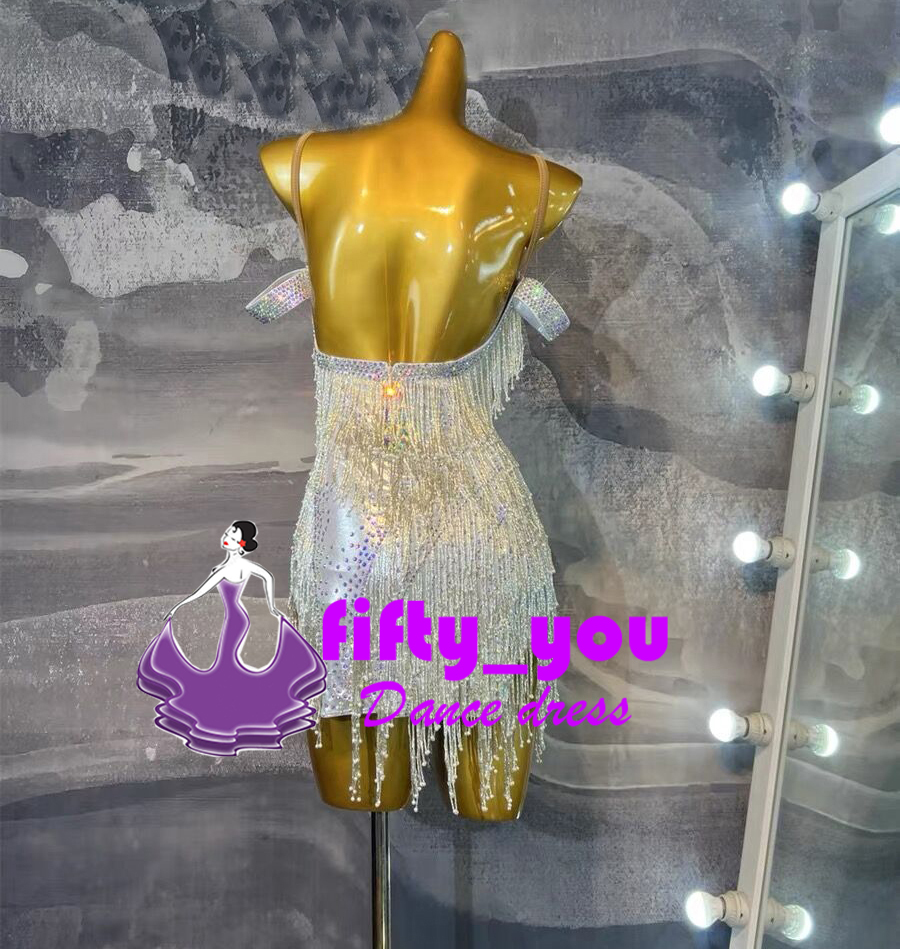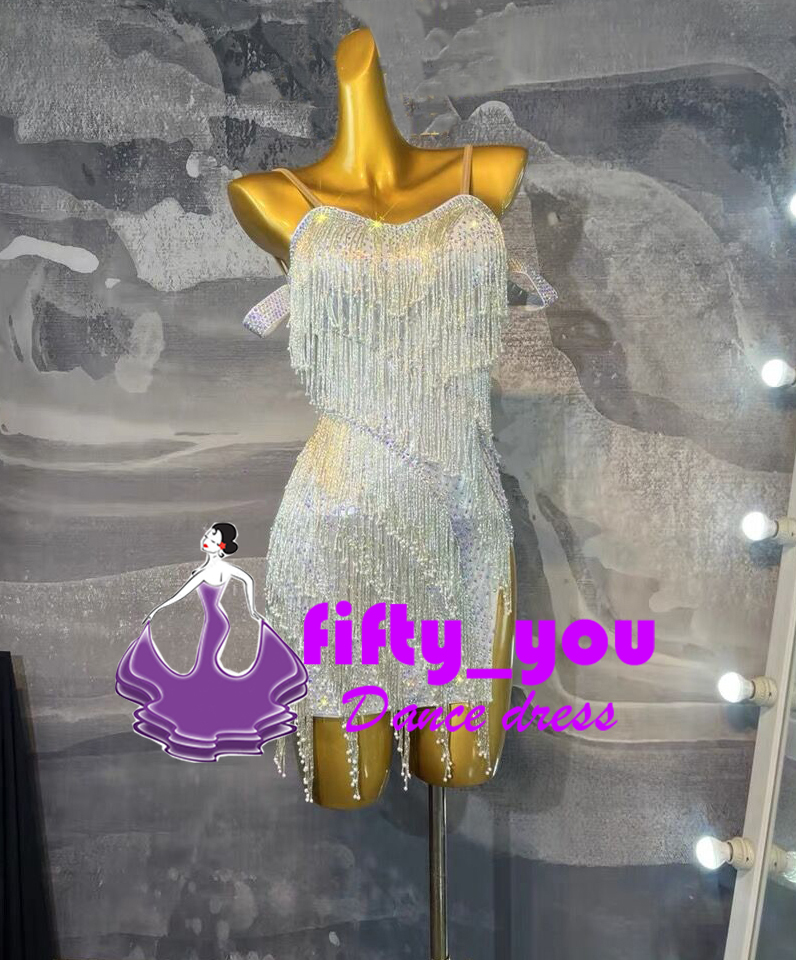 新品fifty_youサイズセミオーダー ハイクオリティレディース社交ダンス衣装 ダンス競技ラテンドレス ビーズいっぱい飾り 上品デザイン