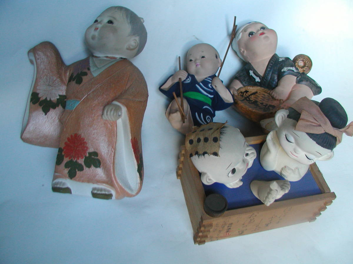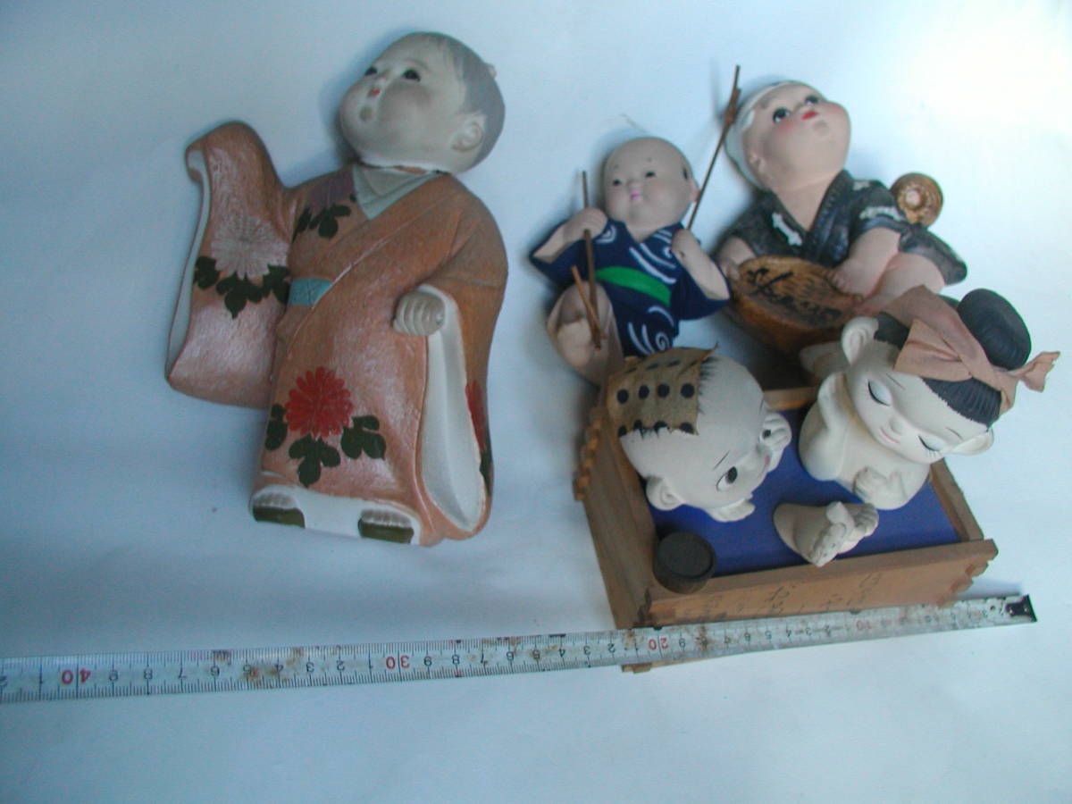 4体セットです。中央の人形は、立てる台のようなものがあったようですが、ないです。自立しません。