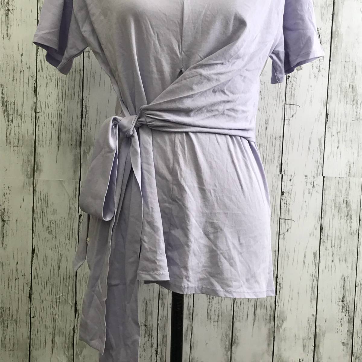 | 商品説明 | 商品名/ウエストリボンカットソー サイズ/M 着丈64cm身幅48cm肩幅49cm袖丈15cm 素材/綿100% 商品状態/傷や汚れあり、右肩後ろに穴 |