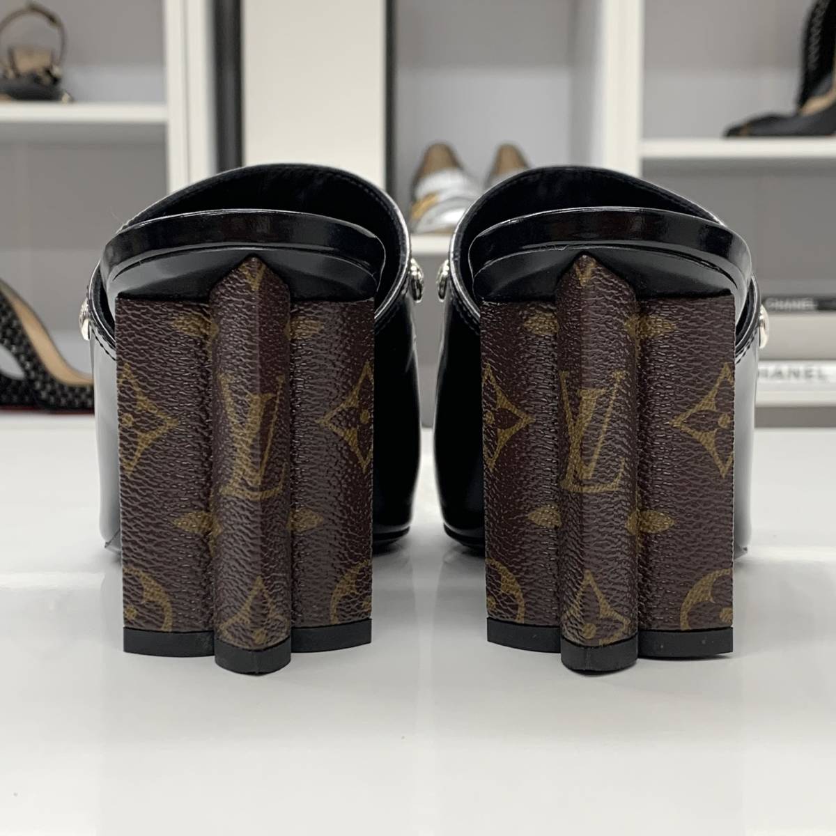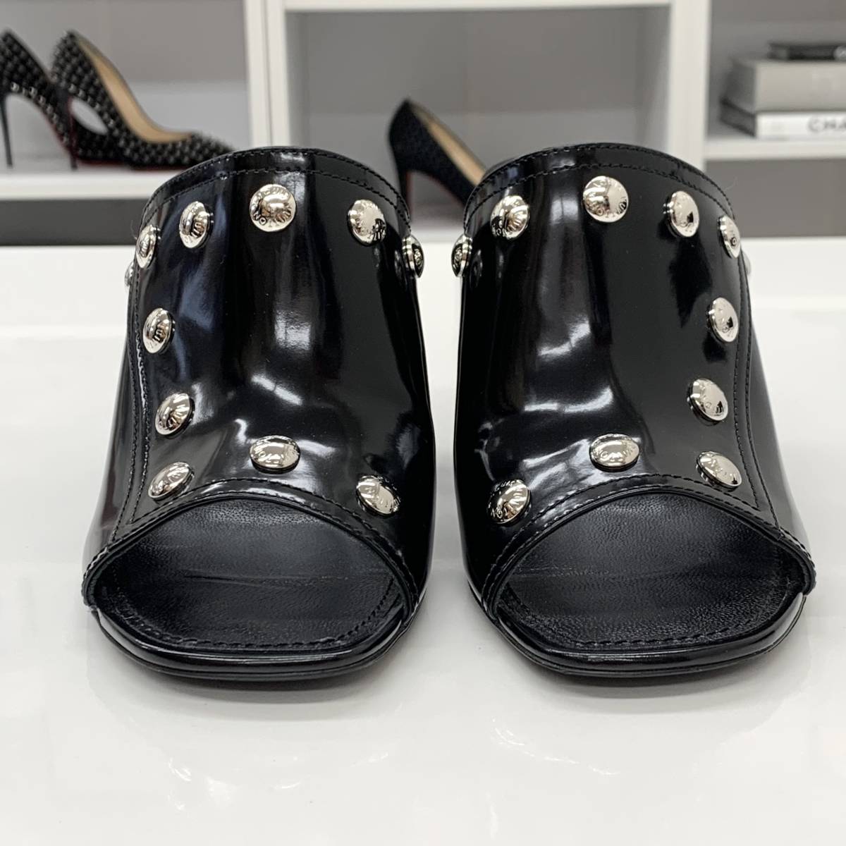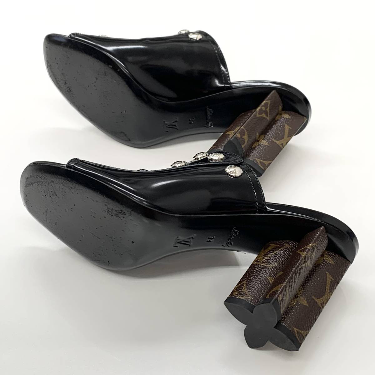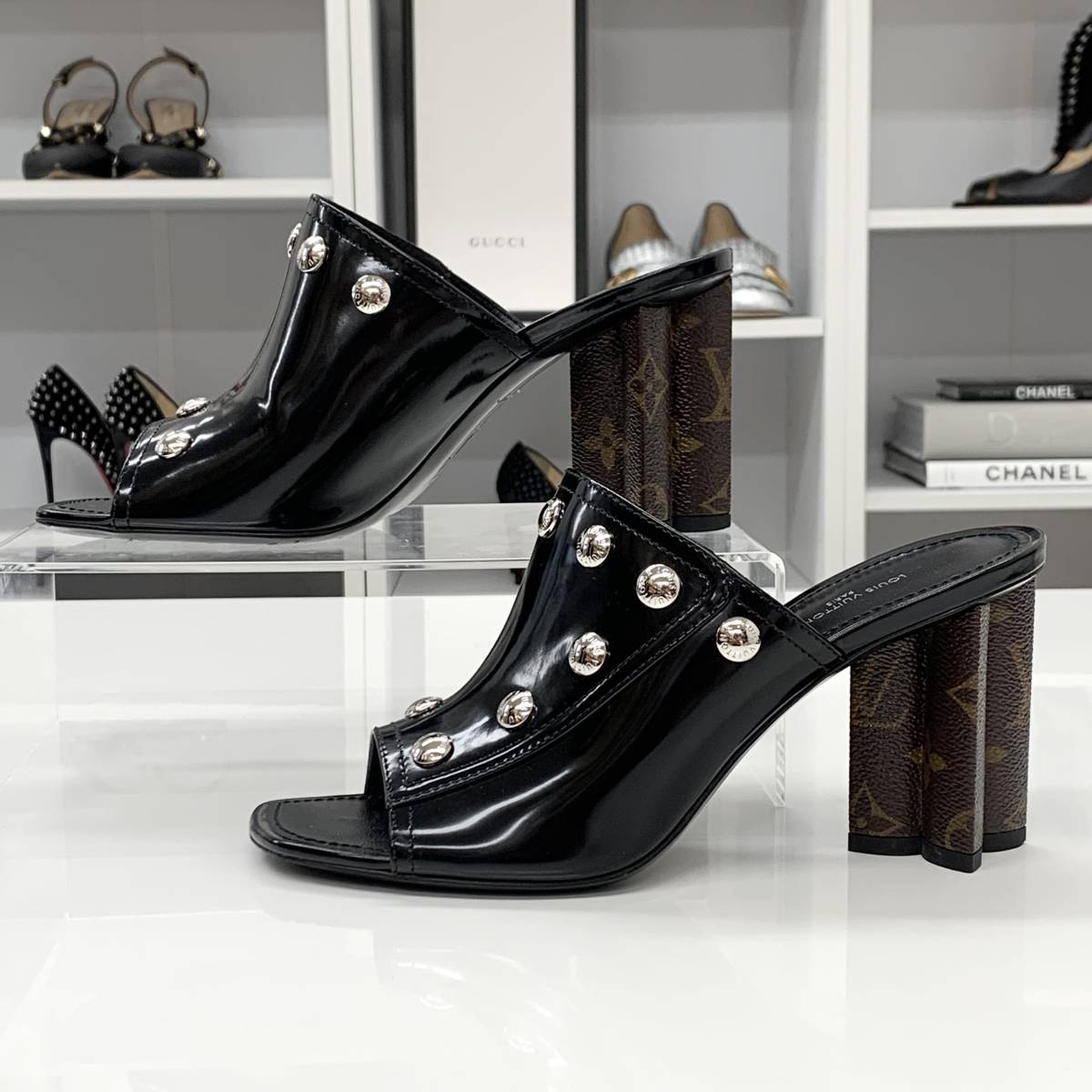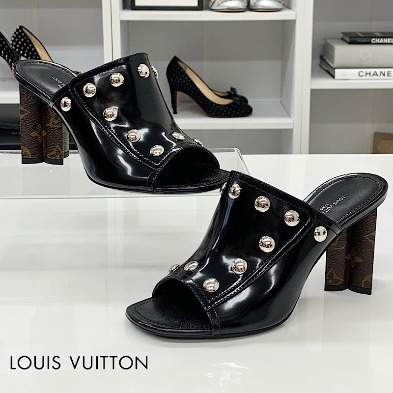 7523 ヴィトン シルエットライン レザー スタッズ サンダル ブラック