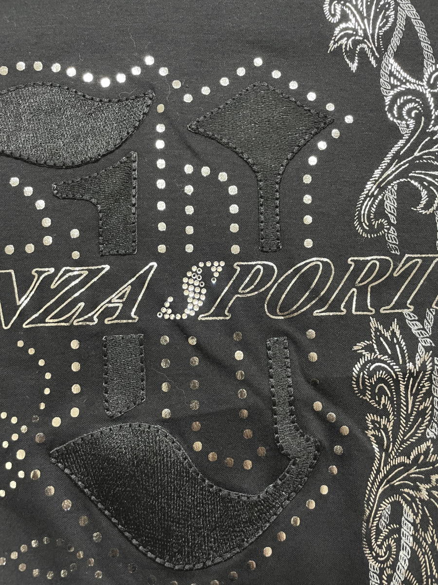 バレンザポースポーツ VALENZA SPORTS ブラック Tシャツ   ビッグロゴ スパンコール ラメ ワッペン ハイデザイン 石瀬5436