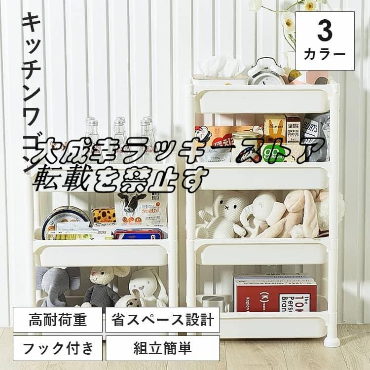 実用★ 収納ラック ホワイト キッチンワゴン 大容量 3段 おしゃれ 組立簡単 キッチン収納 移動楽々 F1497