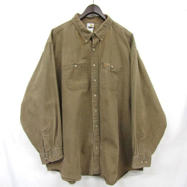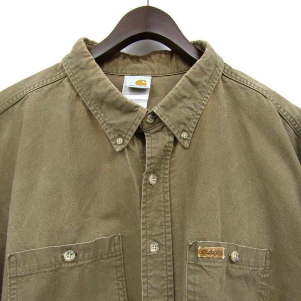 ビッグサイズ 2XL 程度 Carhartt ボタンダウン BD シャツ 長袖 ブラウン カーハート 古着 ビンテージ 3AU2305