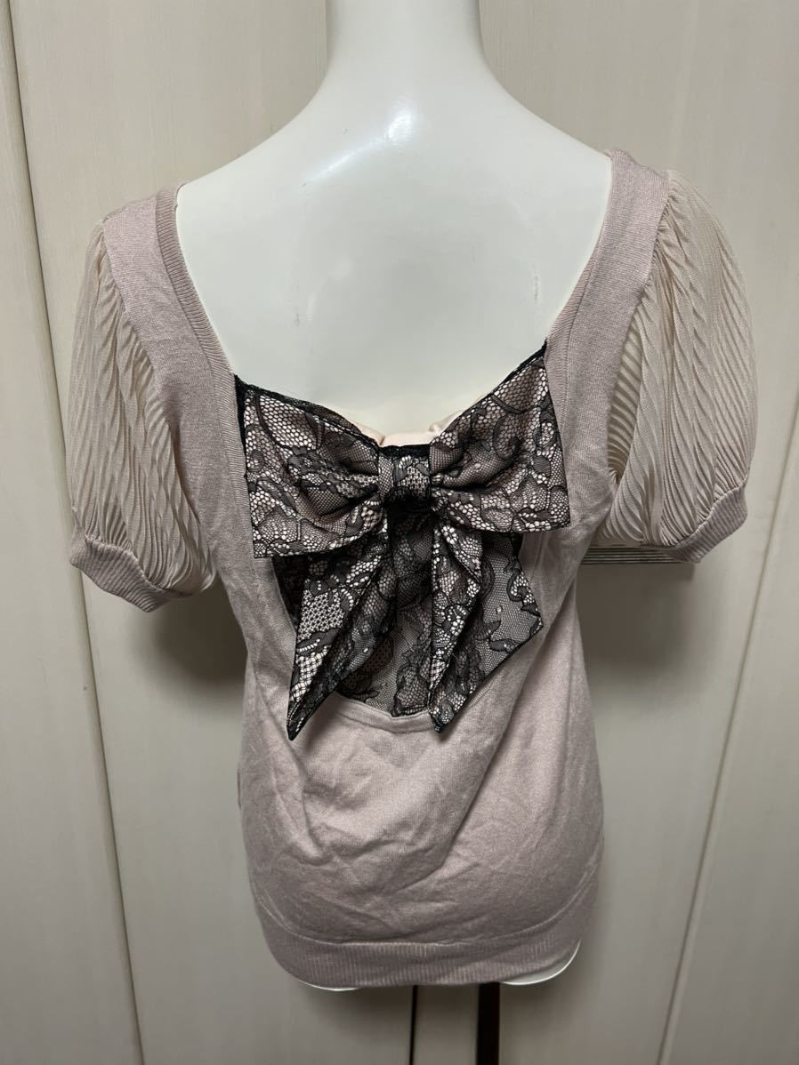 DOUBLE STANDARD CLOTHING SOV  ダブスタ バックリボン 半袖ニット ベージュ