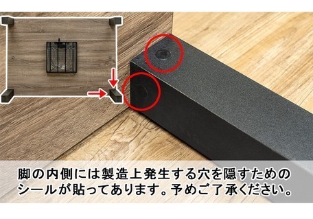 ※脚の内側には製造上発生する穴を隠すためのシールが貼ってあります。予めご了承ください。