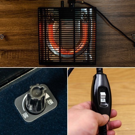 温度調節はヒーターについているツマミで強弱を切り替えます。