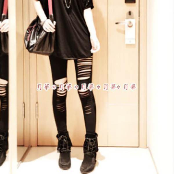 左右段違いでの切り込みあり、後ろ側は無地のおしゃれなレギンス。