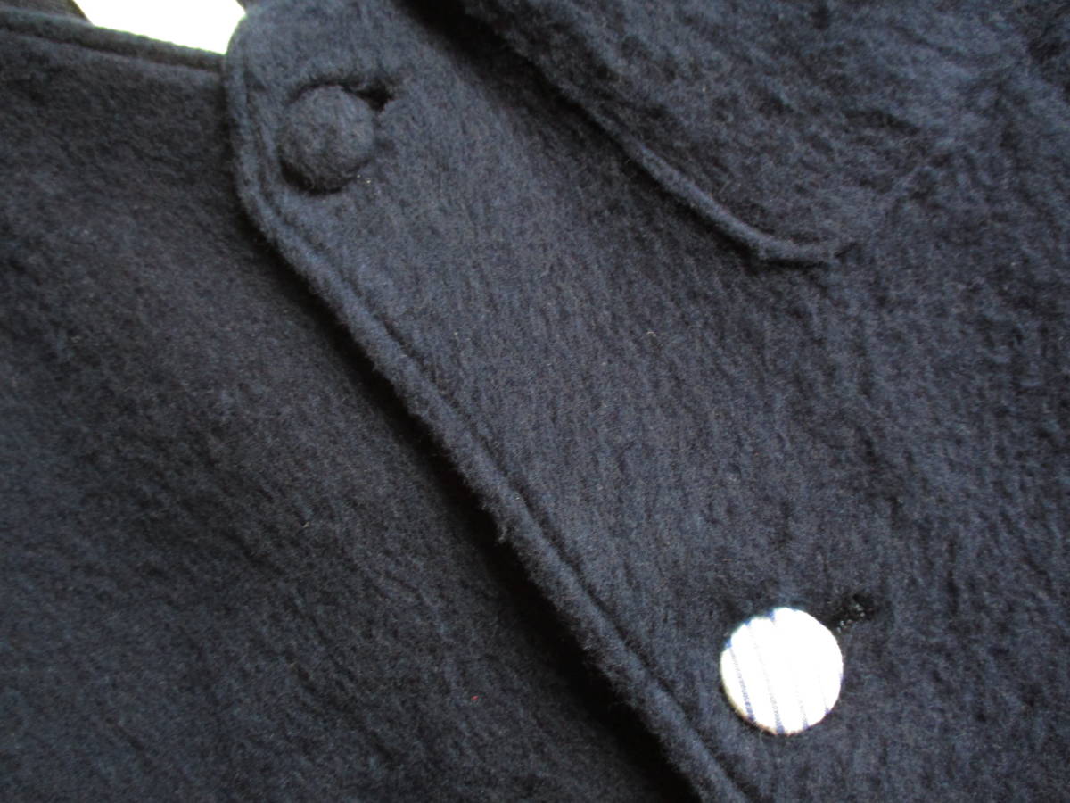表記サイズはS、60%コットン×30%アクリル×10%ポリエステル、日本製、色はネイビーです。