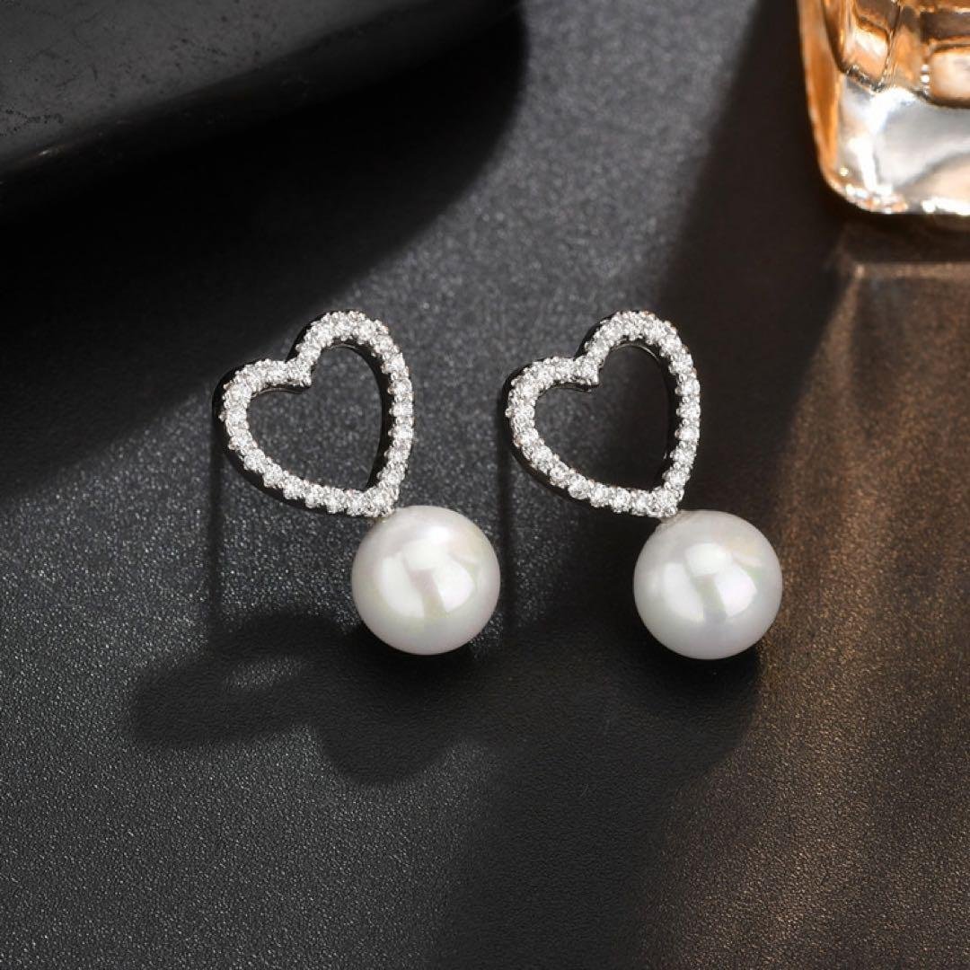 新品 可愛いハートのピアス レディース 大人気 パールピアス シルバー925 ピアス アレルギー対応