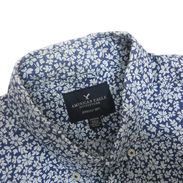 z■アメリカンイーグル/AMERICANEAGLE OUTFITTERS 長袖BDシャツ 半袖【M】青系/men's/94【中古】■