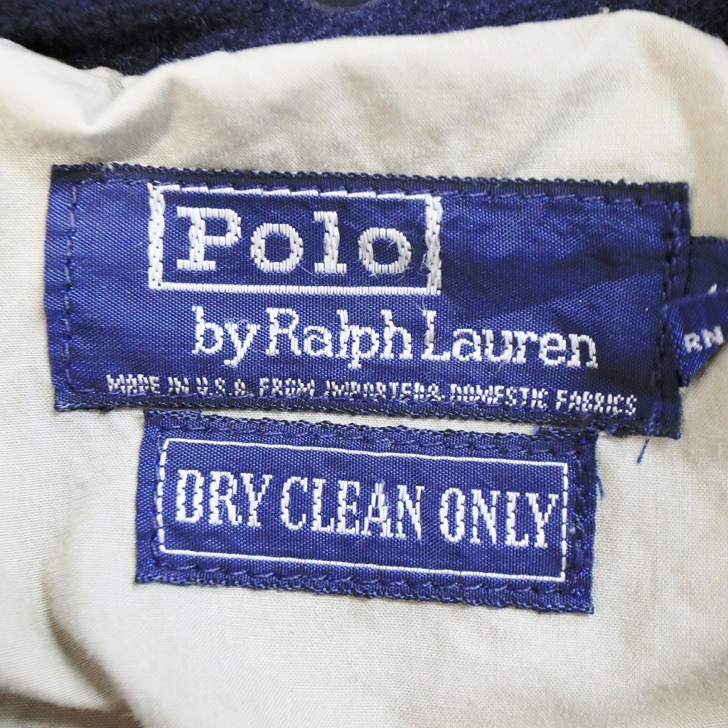 [商品管理番号] O5050 [ブランド] Polo by Ralph Lauren/ポロバイラルフローレン [表記サイズ] S [実寸サイズ] 肩幅:約49cm 着丈:約50cm 身幅:約55cm 袖丈:約6cm [素材] 表地 : ウール [色] ネイビー [仕様] 生産国 : USA製 90年代 刺繍 ワンポイントロゴ チンストラップ ウール [状態] 汚れ:腹部裏地 破れ:胸 特記事項: 首元付属品欠損 | |||