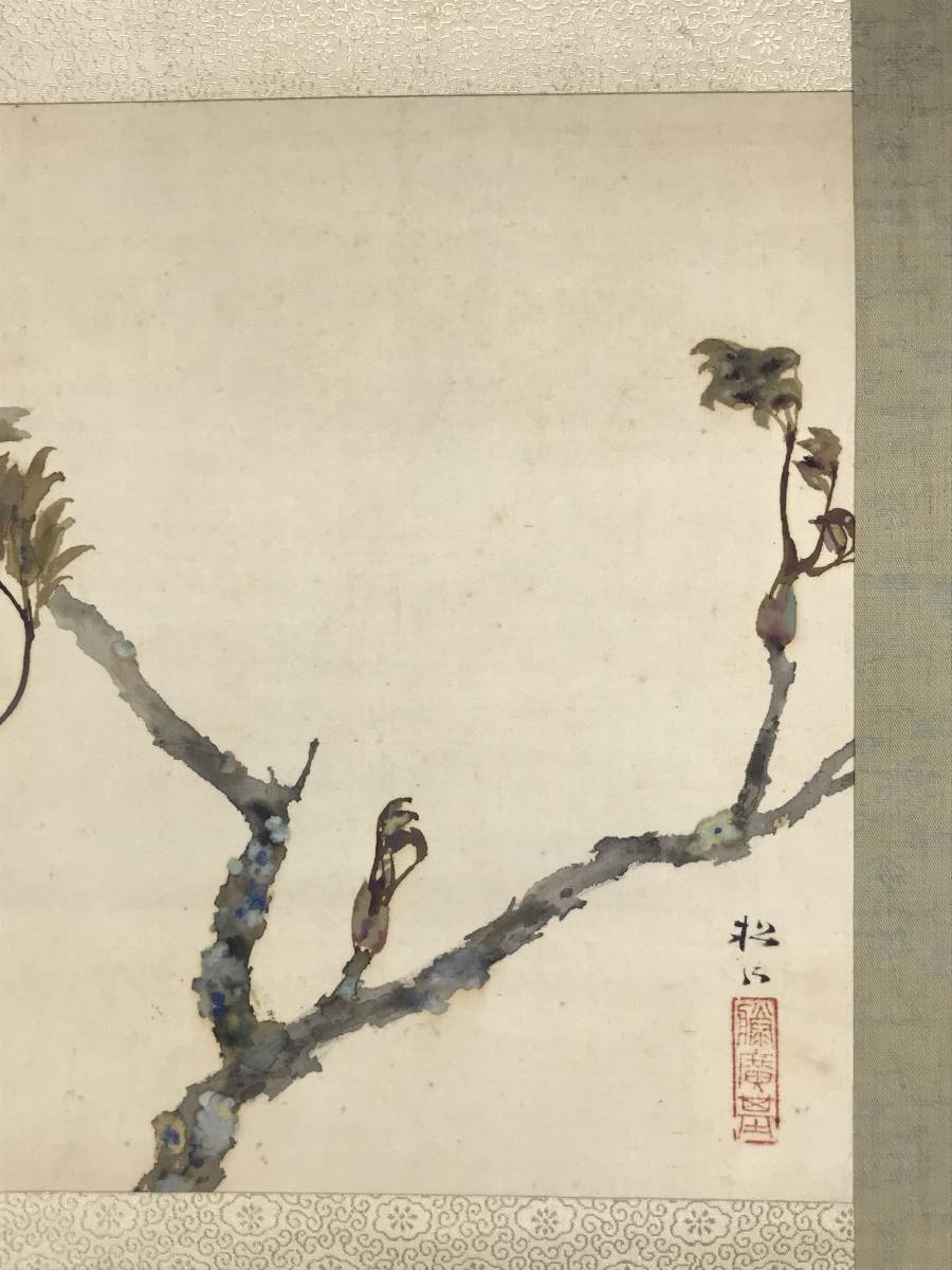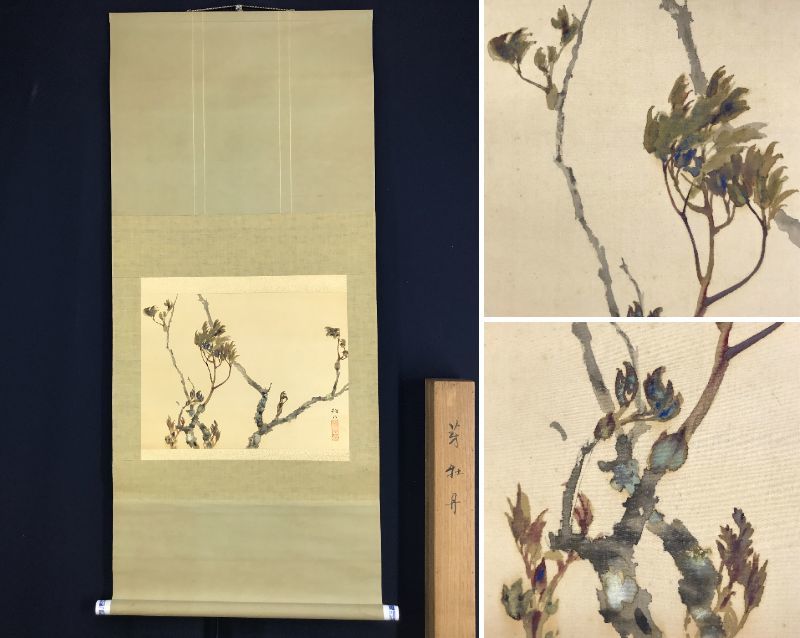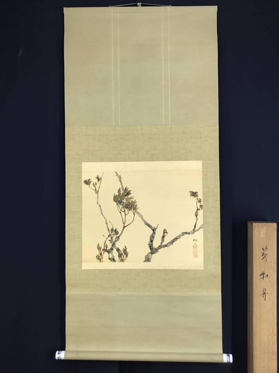 真作/藤井松山/芽牡丹図/牡丹図/花図/横物//掛軸☆宝船☆AD-454