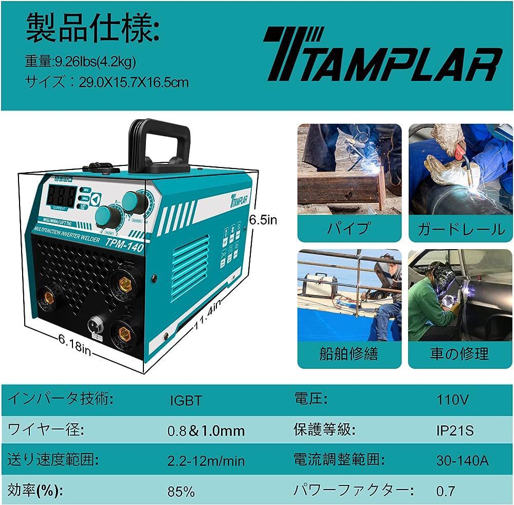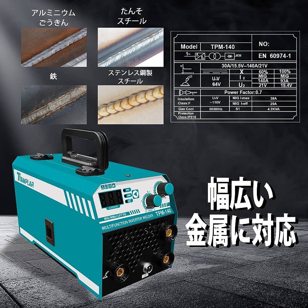 TTAMPLAR 溶接機 半自動 100V ノンガス MIG/MMA/リフトTIG インバーター mig140 コンパクト 軽量 50/60Hz 家庭用 日本語説明書 (TPM140)