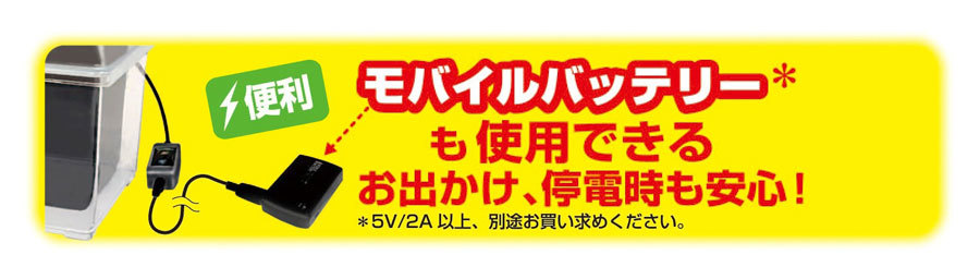 モバイルバッテリーでも使用できるので、お出かけ、停電時も安心!