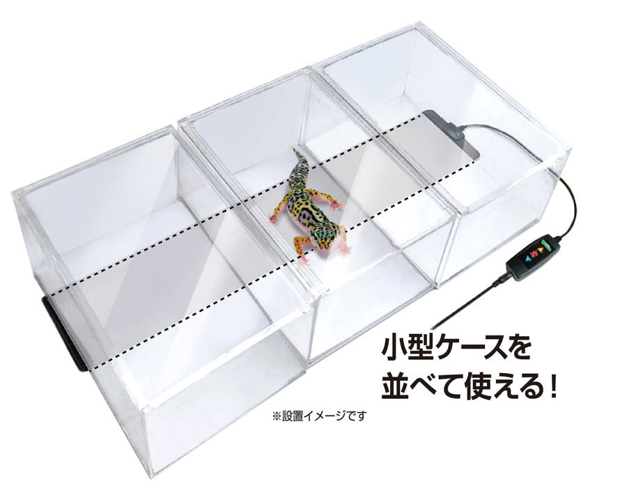 飼育容器にピッタリ貼り付けられ、確実に効率よく温度をケージに伝えます。