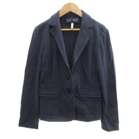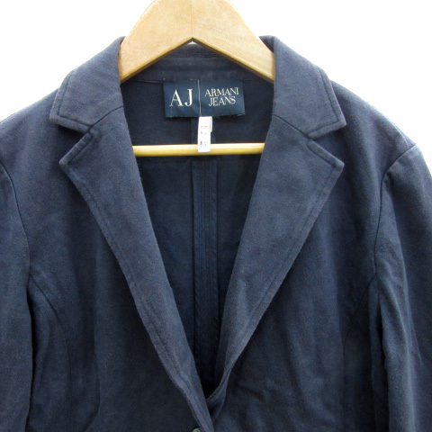 アルマーニ ジーンズ ARMANI JEANS テーラードジャケット ミドル丈 シングルボタン 無地 40 紺 ネイビー /YS25 レディース