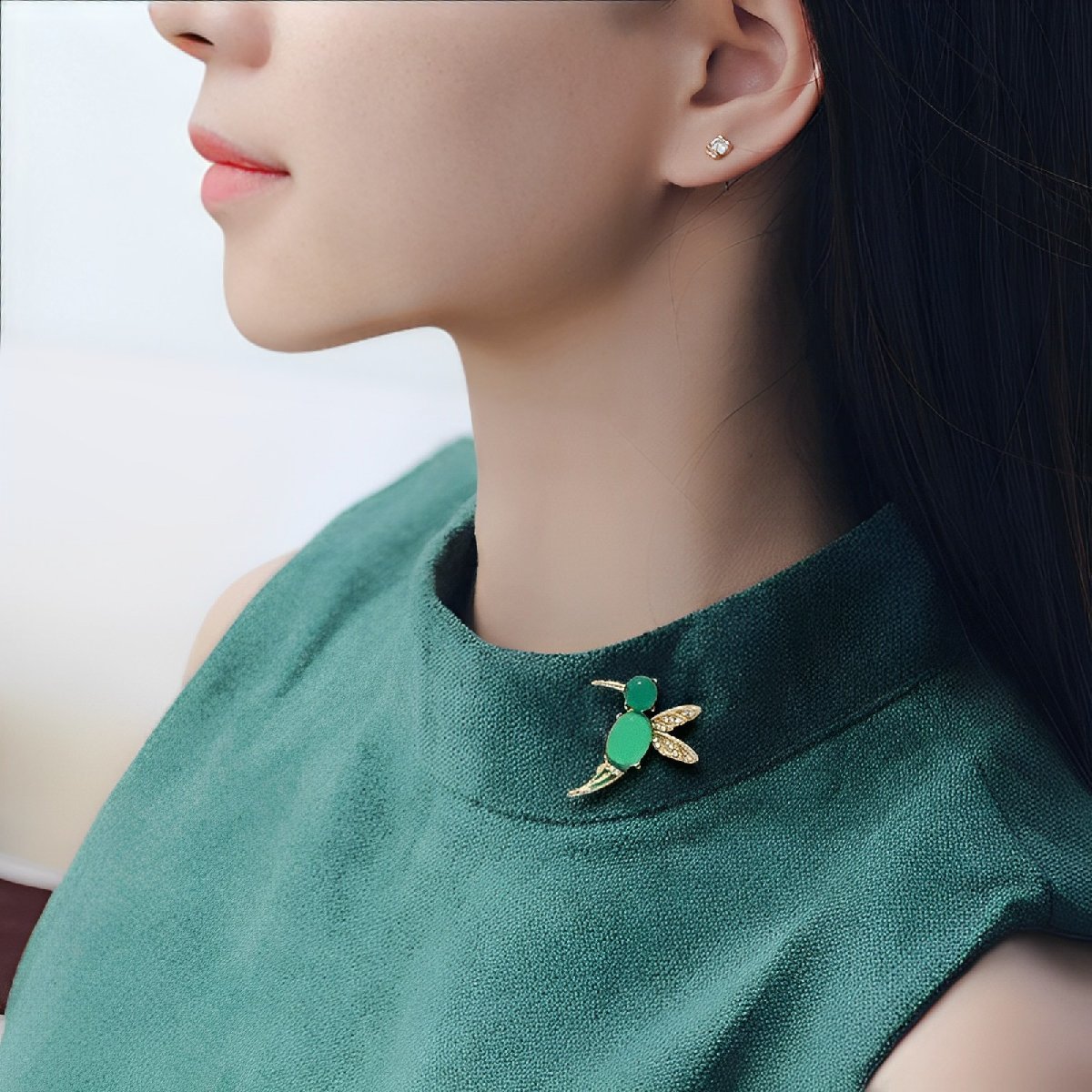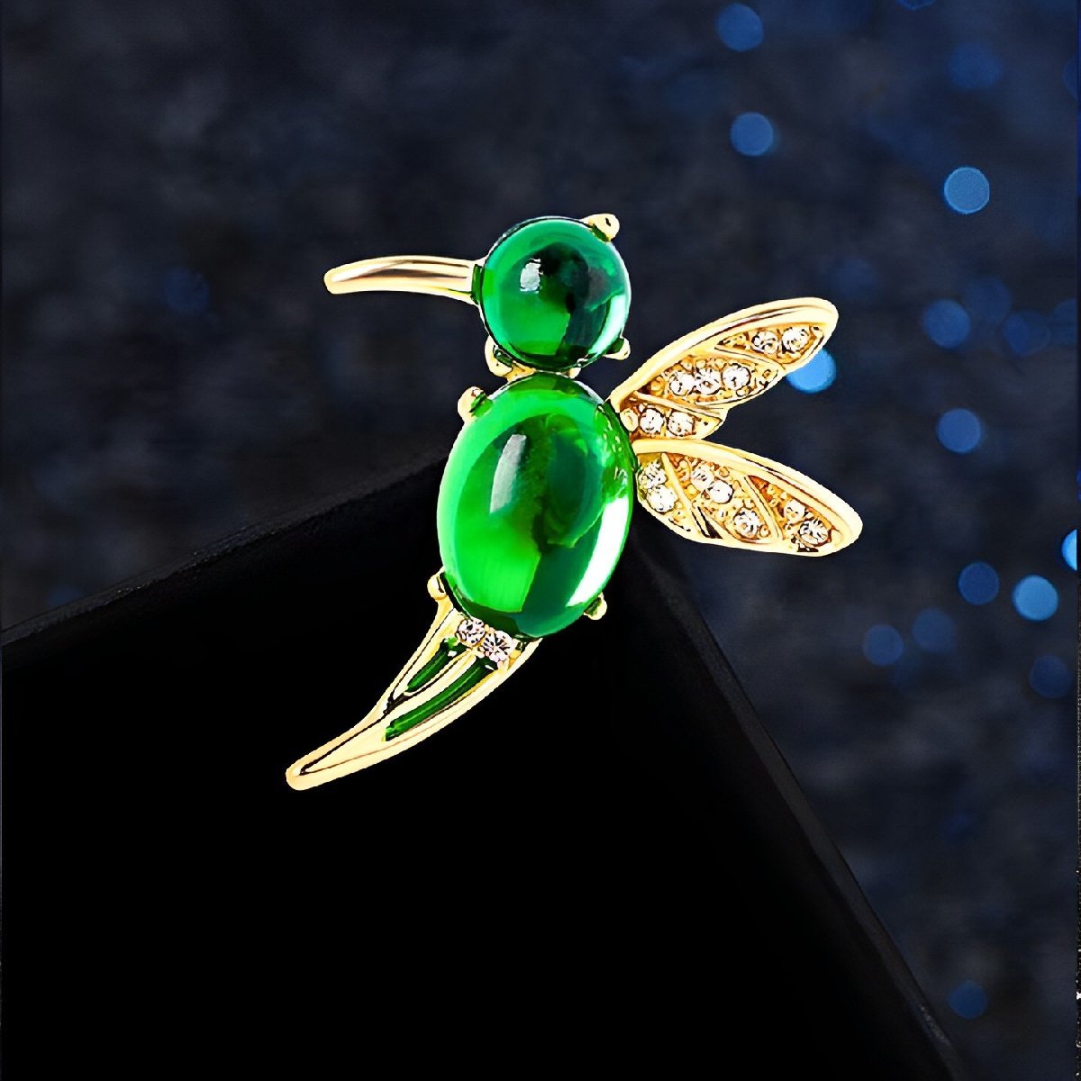 【動物】美品 グリーンカワセミ ハチドリ ブローチ