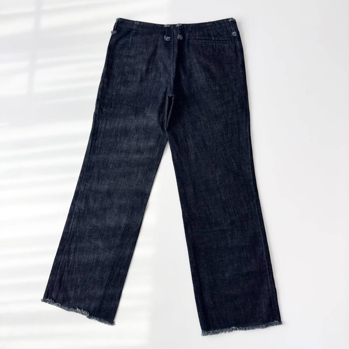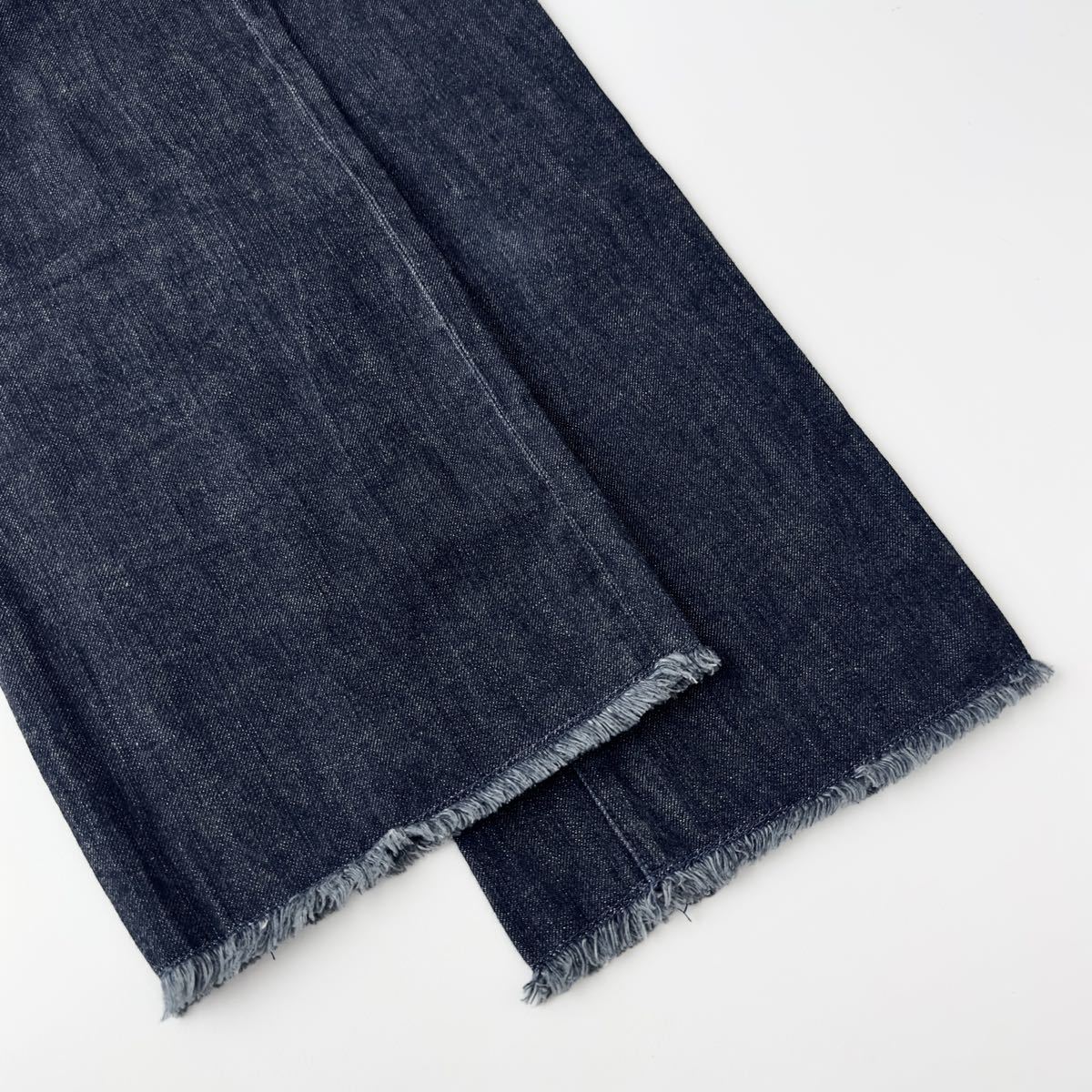 濃いめのダークインディゴカラーのデニムパンツ。