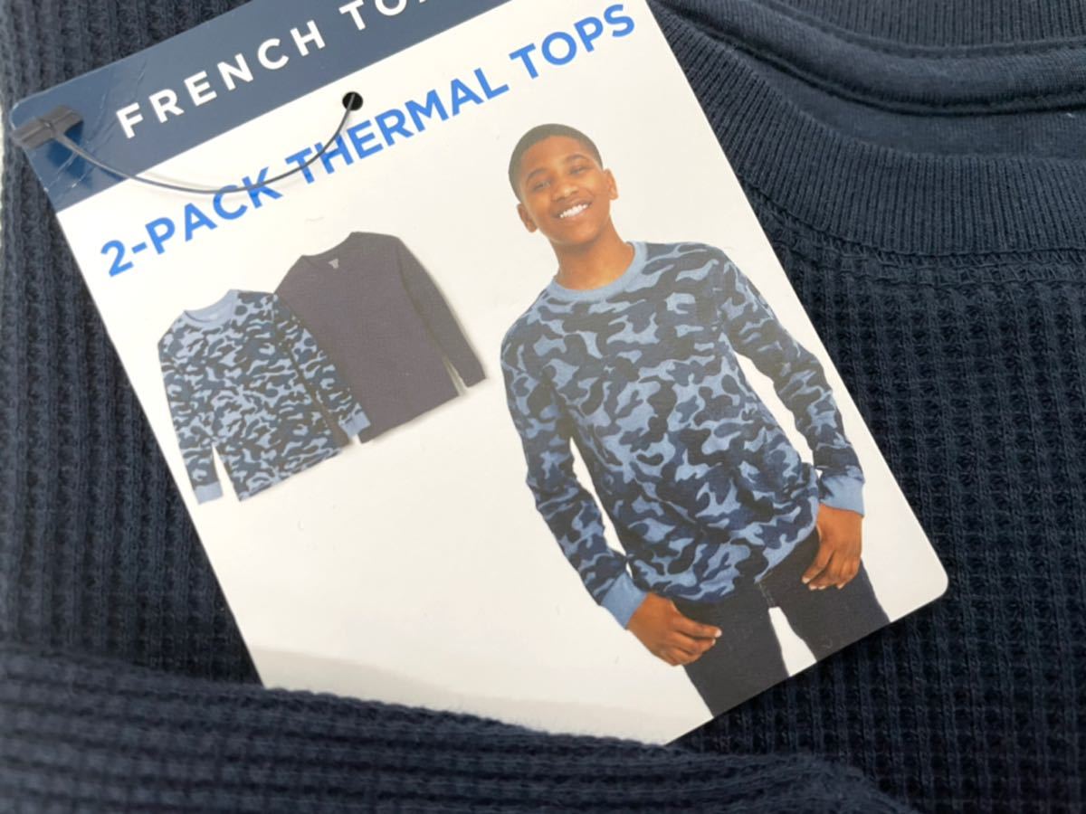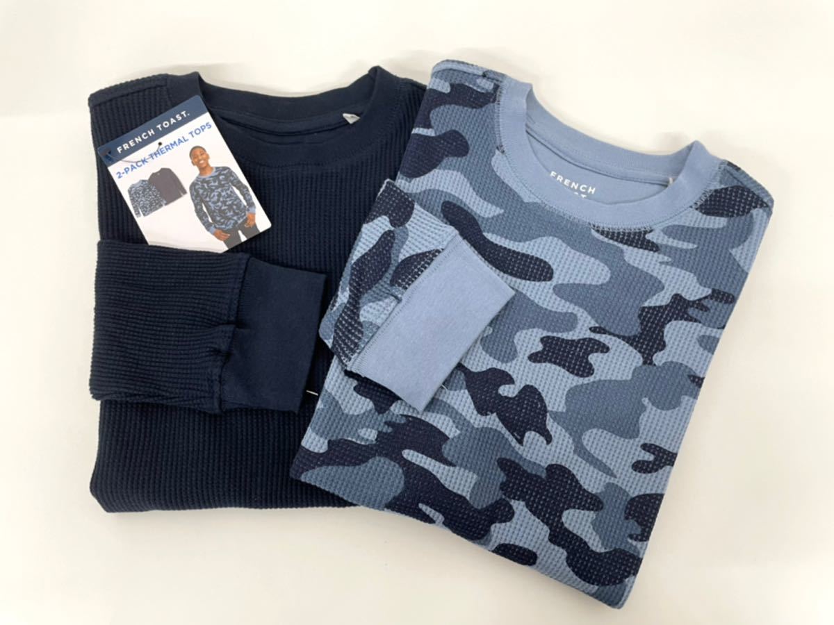新品■FRENCH TOAST メンズ ボーイズサイズ 長袖シャツ M (8) ロンT ネイビー 迷彩 丸首 ワッフル