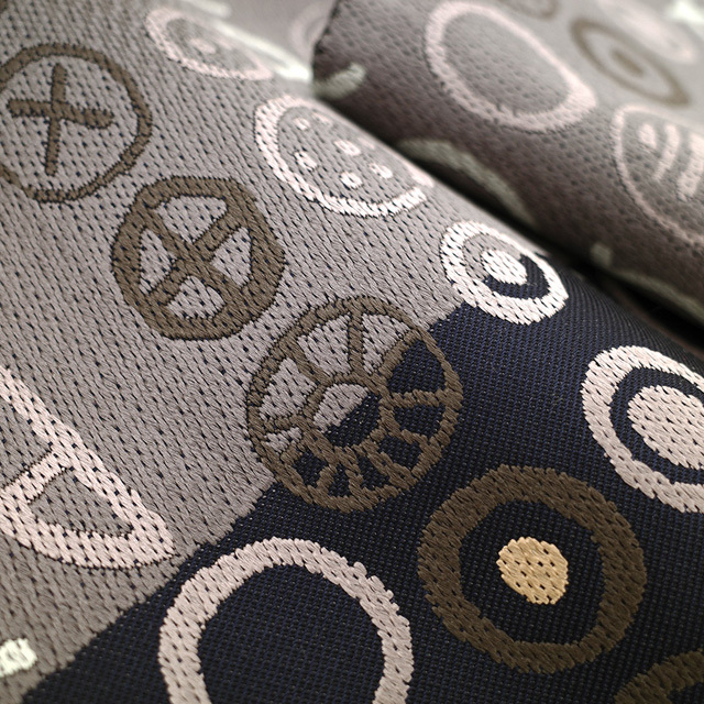 こちらのお品は、黒紺色×濃グレージュ色の織り分け地。
