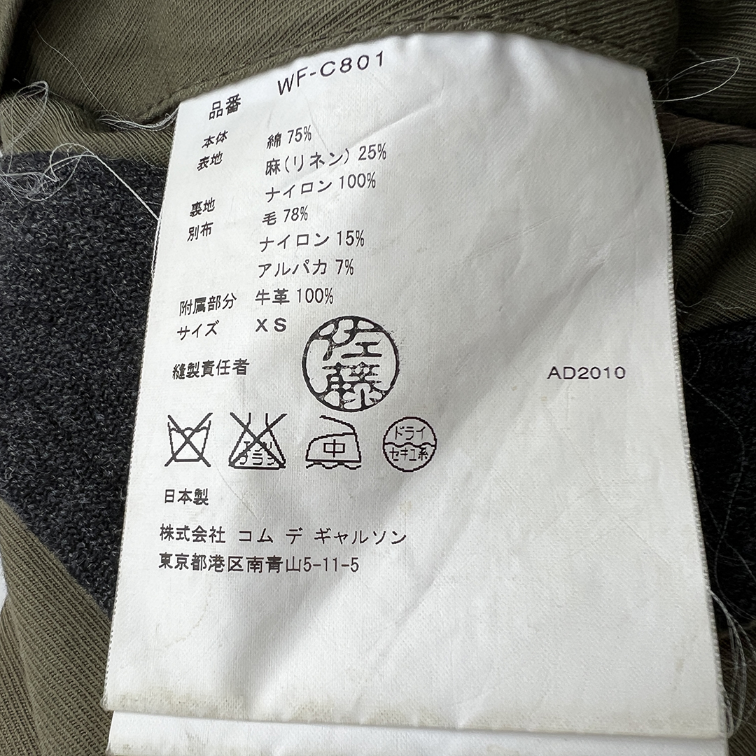 品番はW F -C801。ADは2010でサイズはXS、各部やや、フードなどやや色焼け部分あり。全体が細身のシルエットとなっており、