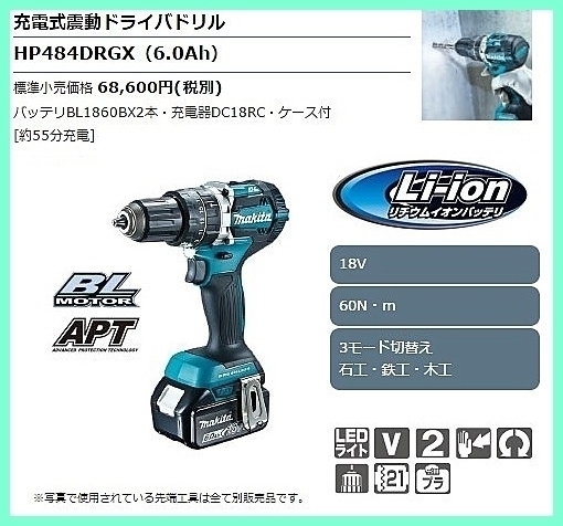 標準付属品 | +ビット2-65、フック、ケース 充電器、バッテリ(BL1860B)[6.0Ah]×2 |