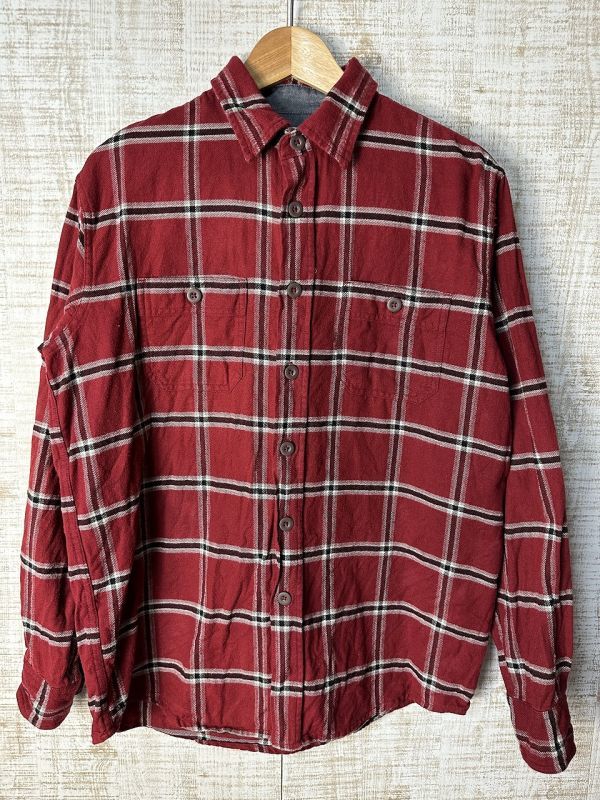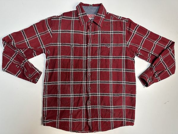 ●US USED Wrangler ラングラー ネルシャツ チェック柄 長袖 シャツ レッド赤【L】コットン