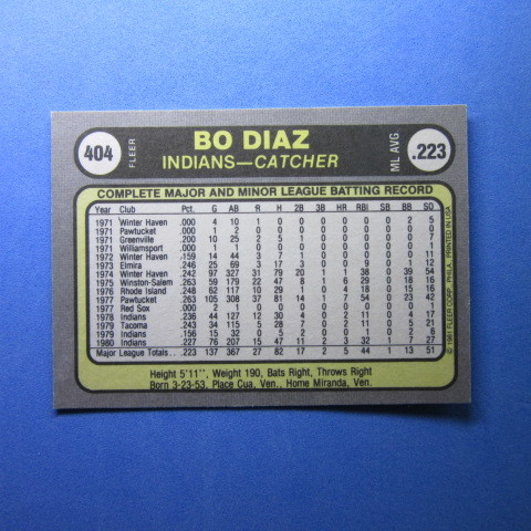 1981 Fleer #404 Bo Diaz