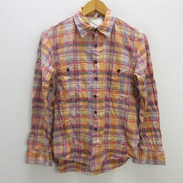 k■カトー/KATO` タータンチェック柄 長袖シャツ【S】橙/MENS■92【中古】