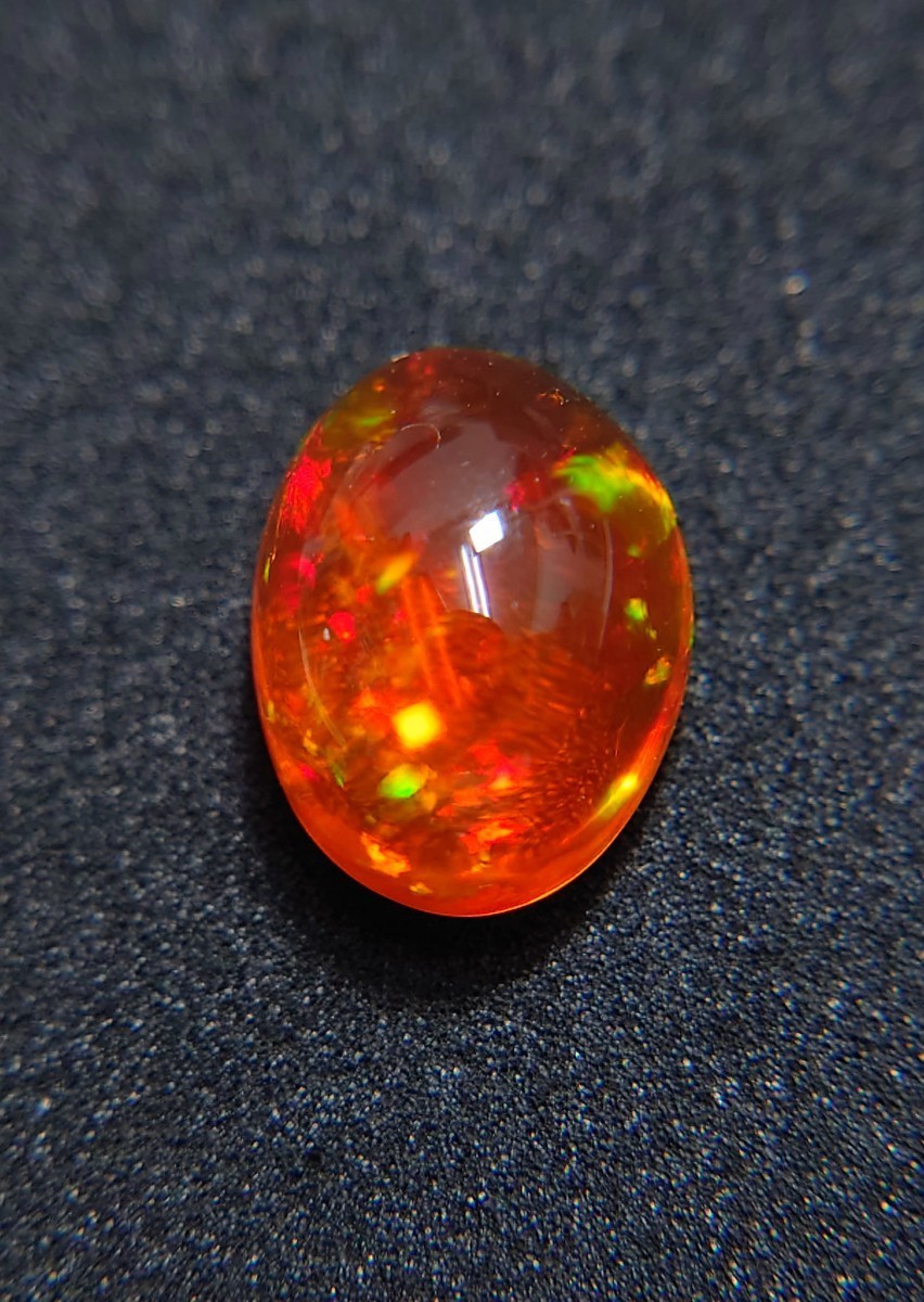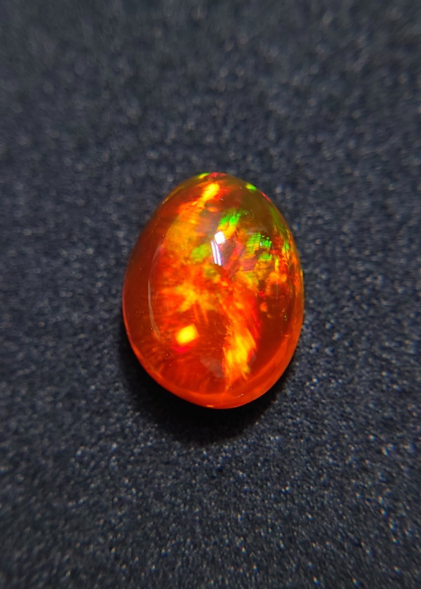赤に緑、黄色など華やかな遊色効果のメキシコオパールです。