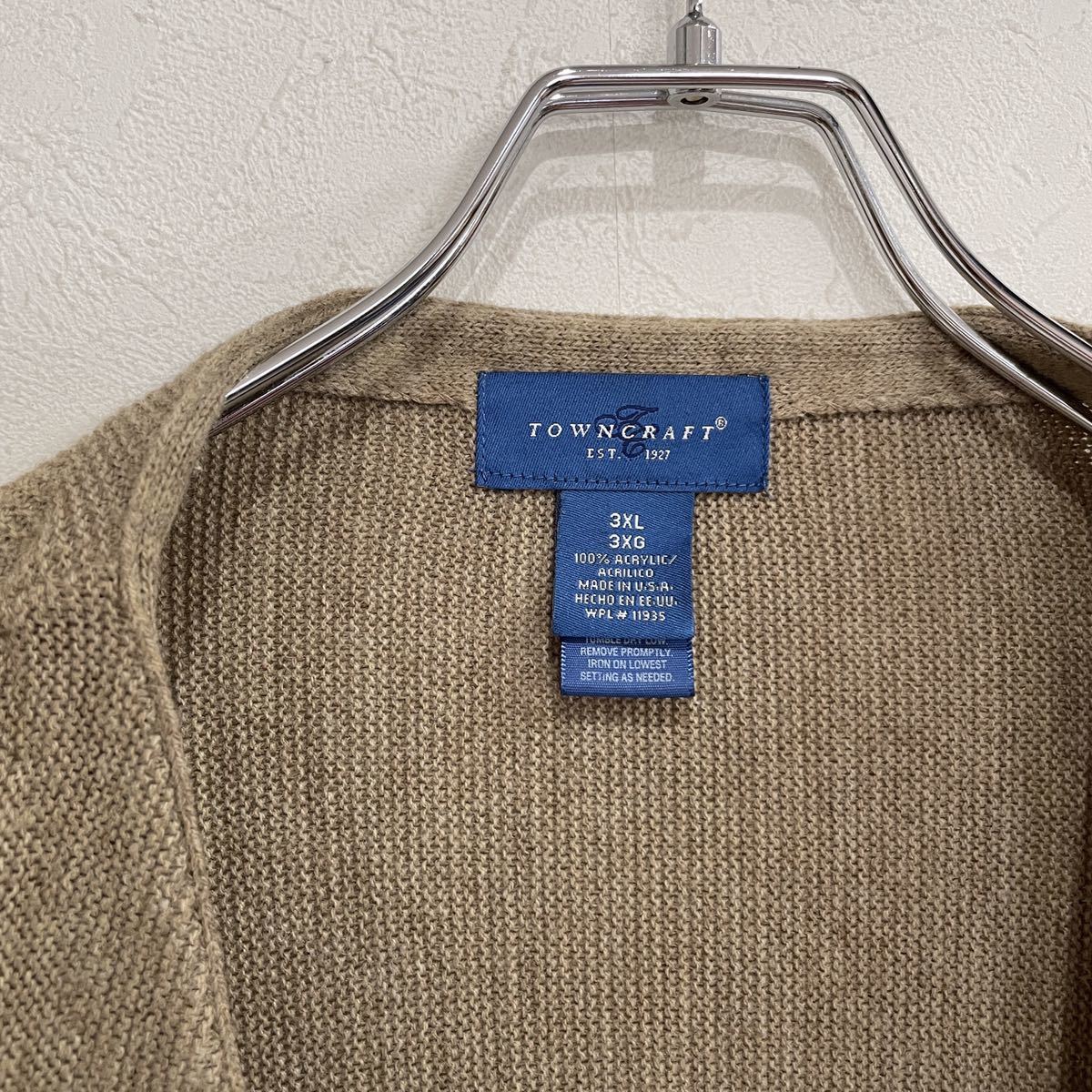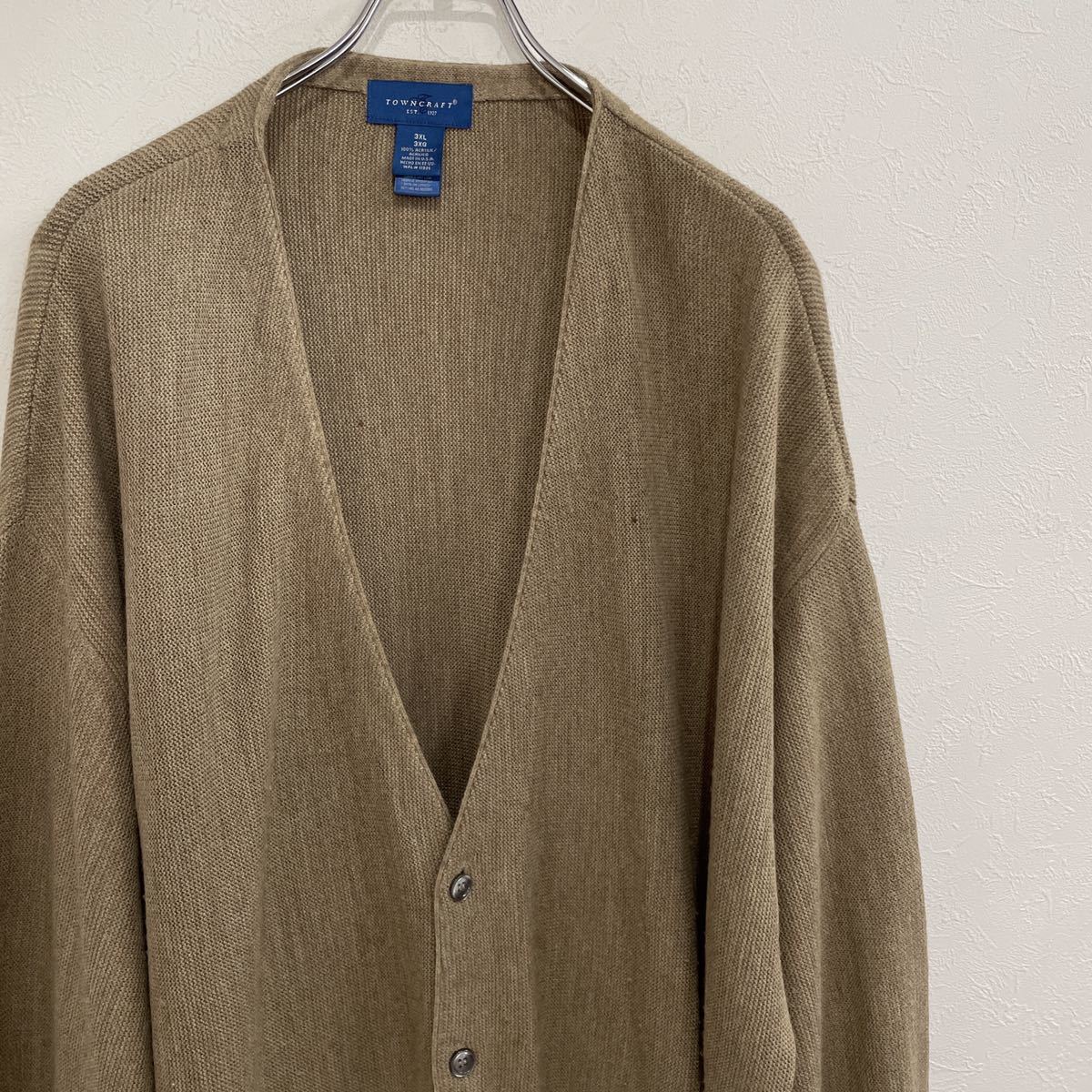 ビンテージ TOWN CRAFT アクリル ニット カーディガン ビッグサイズ 3XL 無地 USA製 221018