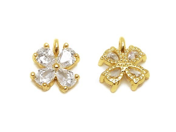 メタルパーツ キュービックジルコニア ゴールドカラー チャーム フラワー No.2[2コ販売] / 450-1 MTL-14G