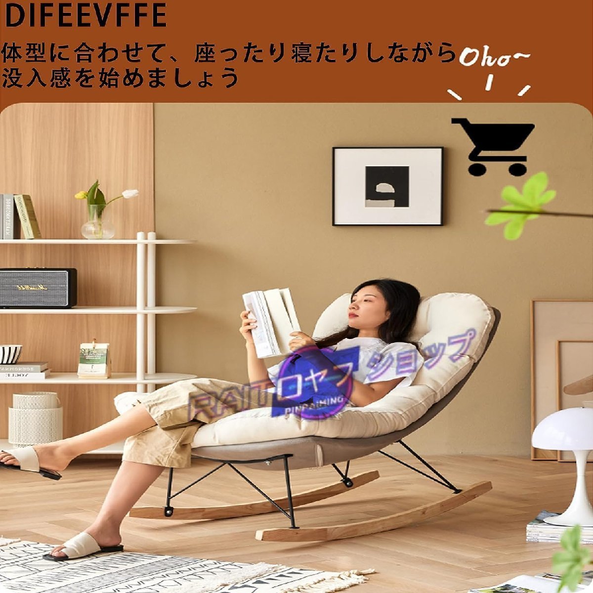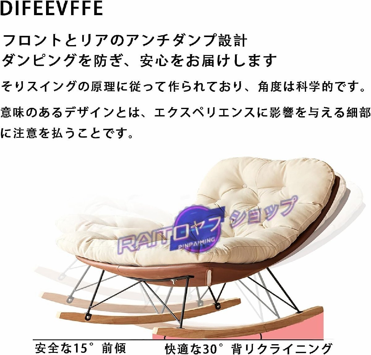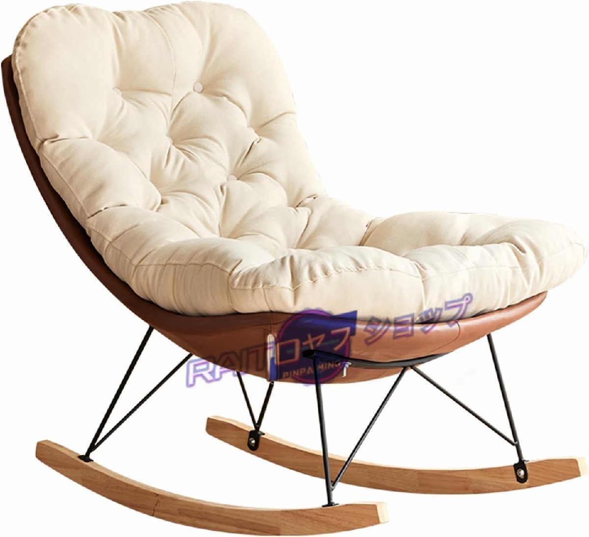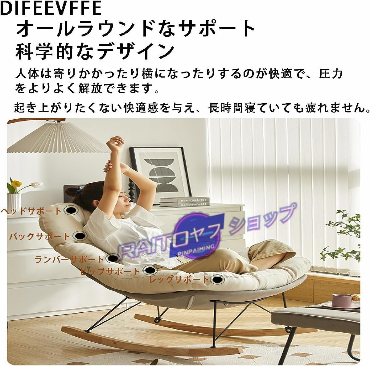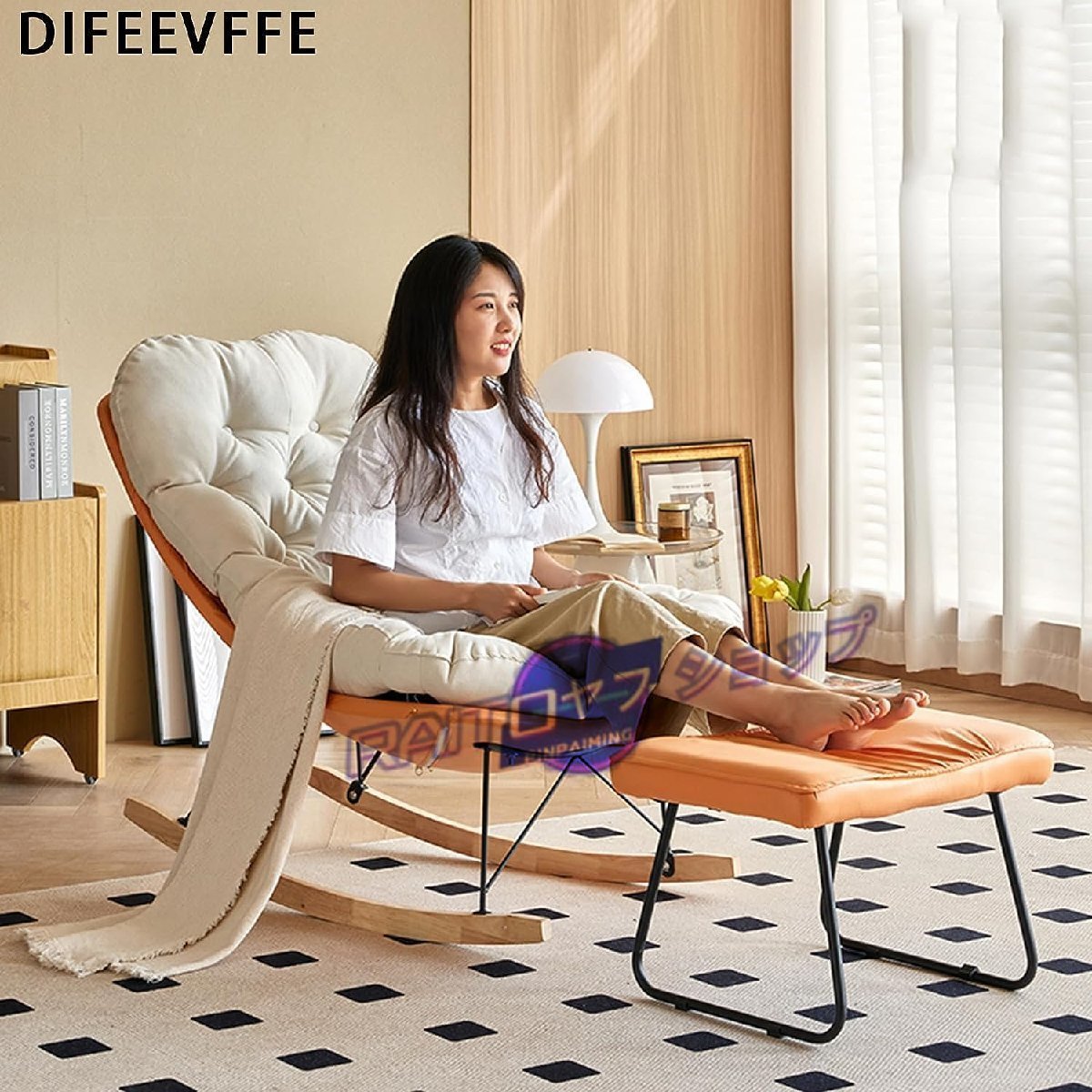 ロッキングチェア、オットマン付き、レイジーレジャーチェア モダンなファブリックの布張りの、ラバーウッド脚のアクセントチェア、 リビン