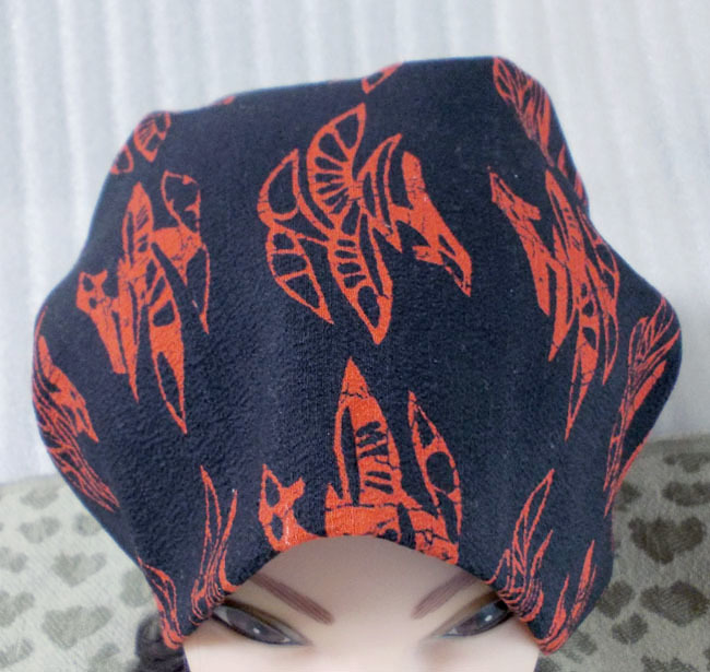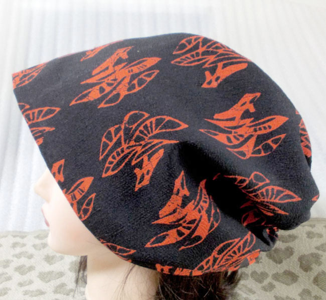 難有難隠し帽子 66㌢ 変わり織り 松の木意匠 キャップ 室内帽子 絹 リメイク ターバン ケア 白髪 軽い 入院 三角巾 日本土産 かぶりやすい