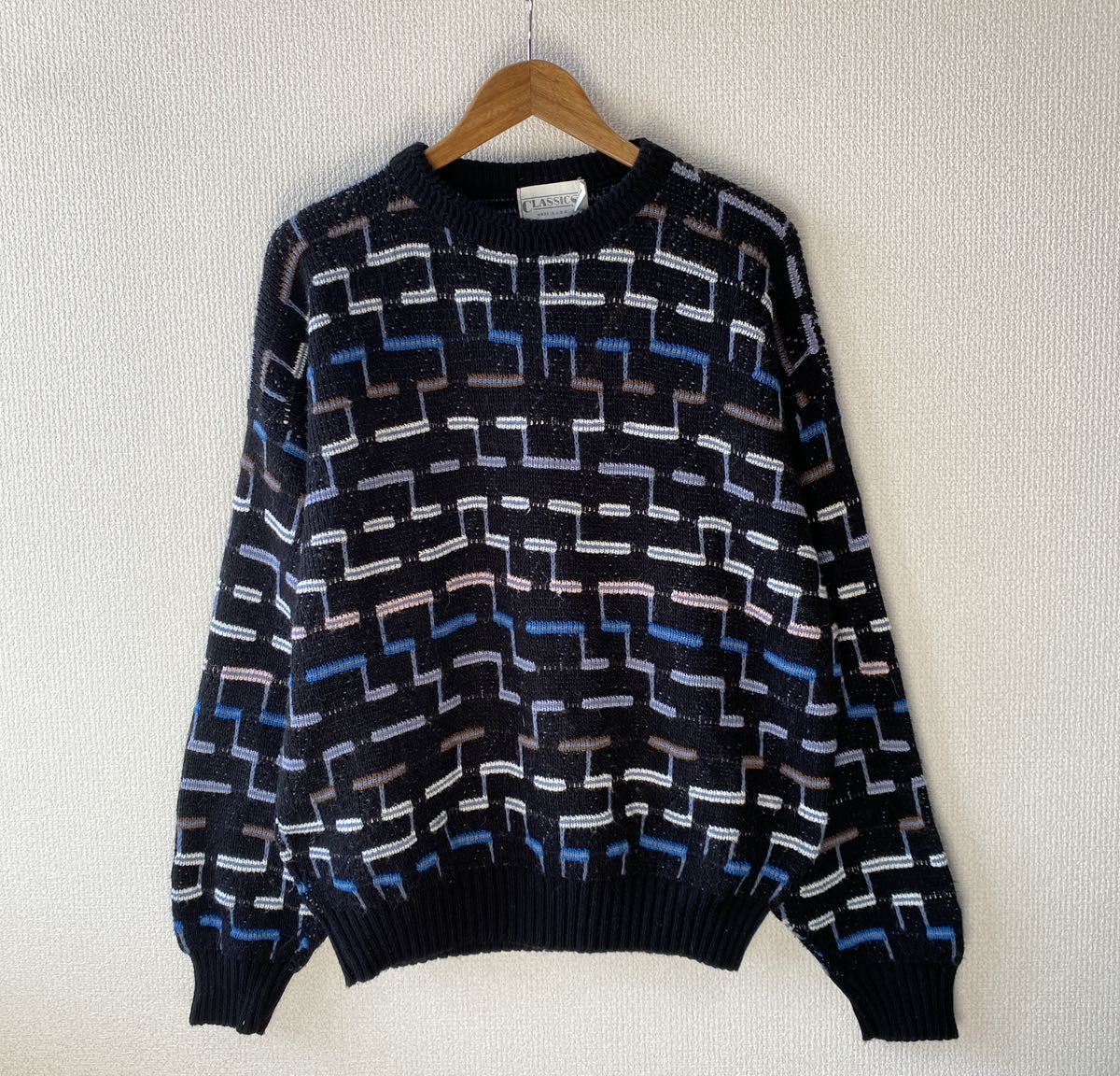 90s USA製 CLASSICS アクリル ニット セーター XL デザイン 古着 アメリカ製