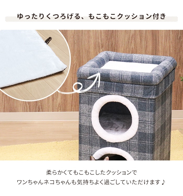 2ルームのペットハウス。 入口のふわふわのボア仕様が可愛らしさを演出。 中だけでなく、外でもくつろげるルーフベッド付き。 ルーフベッドは取り外しできるので、ネコちゃんワンちゃんの気分に合わせて使い分けも◎ 柔らかくてモコモコしたクッションでワンちゃんもネコちゃんも気持ちよく過ごしていただけます。 |