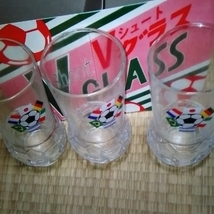 昭和レトロ 佐々木硝子 Vシュート グラス サッカー ボール タンブラー ガラス コップ 3個セット 2SET 未使用品