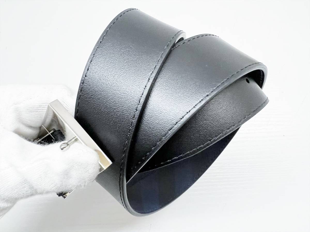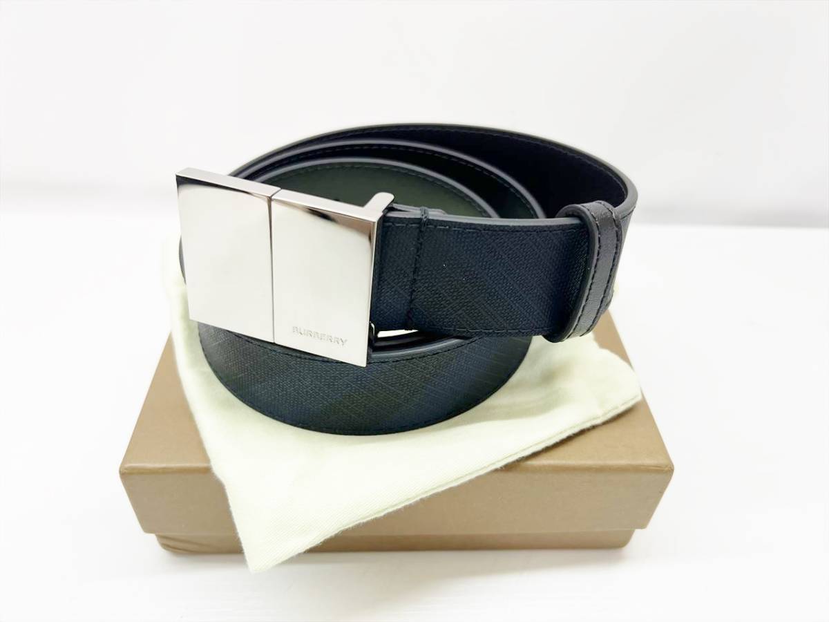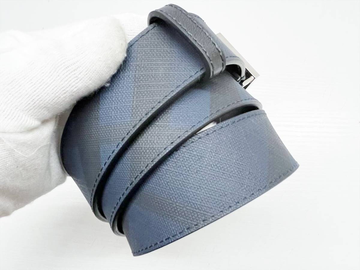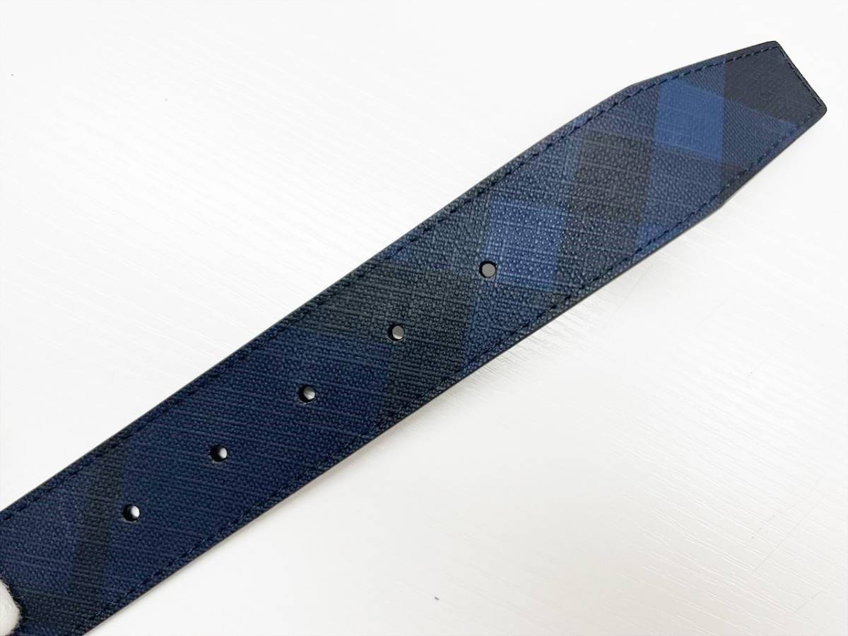 近年 美品 BURBERRY バーバリー PVC ロゴ チェック スクエア メンズ ベルト 95/38