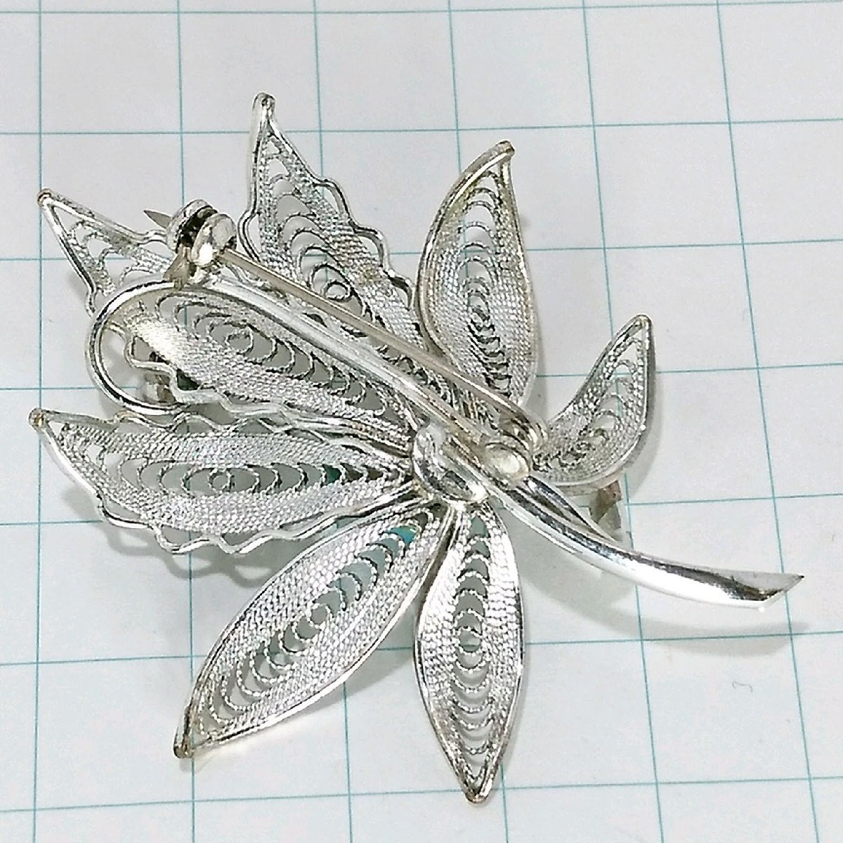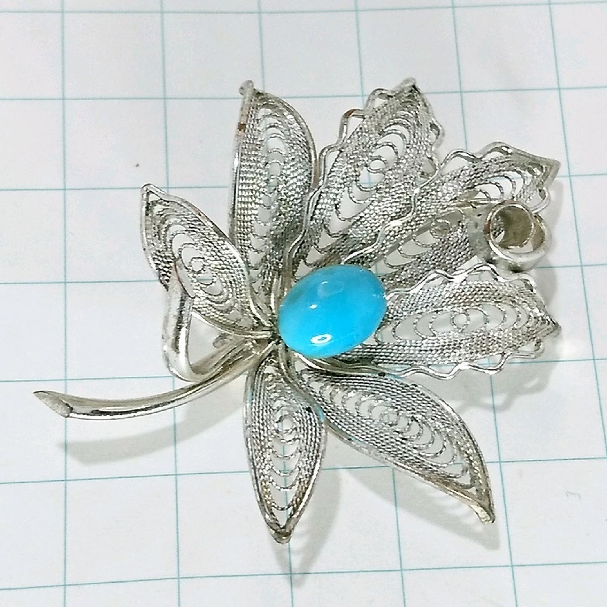 送料無料)ビンテージ☆ターコイズブルー お花モチーフ☆アンティーク ブローチ A20938