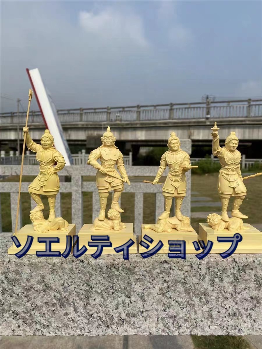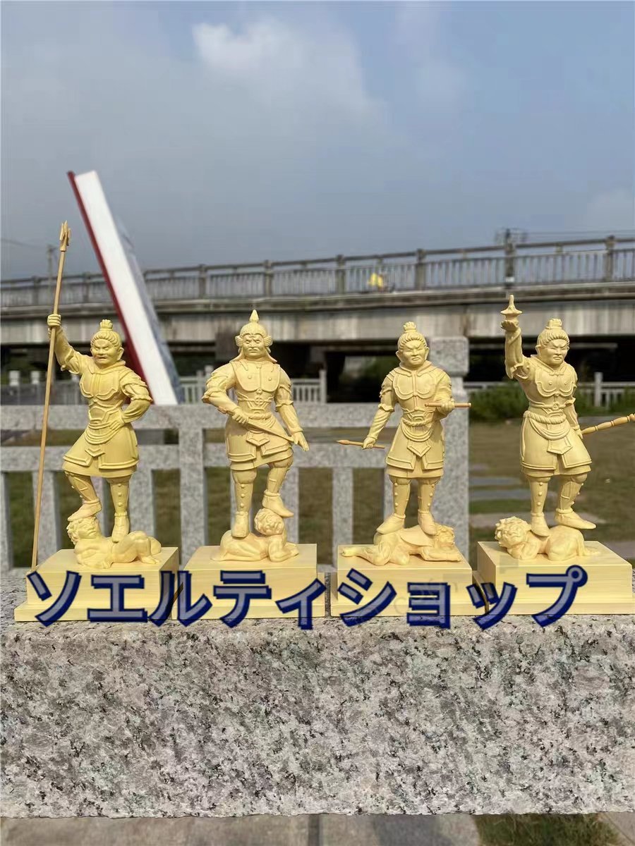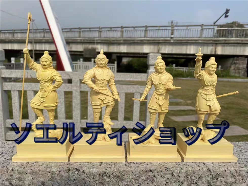 仏像【四天王:多聞天 広目天 増長天 持国天】柘植(つげ) 美術品 ツゲ 彫刻仏像 仏様 置物 仏像コレクション 守護神((総高さ13cm)