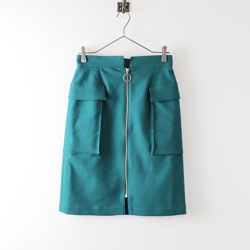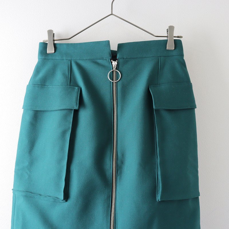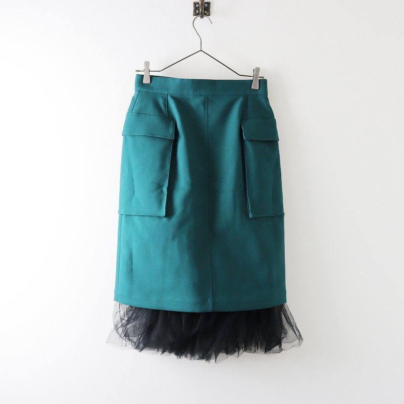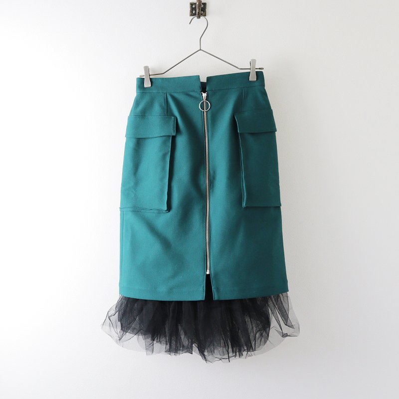 美品 2022SS ロイスクレヨン Lois CRAYON 裾チュールフロントジップスカート M/グリーン 定価3万【2400013632041】