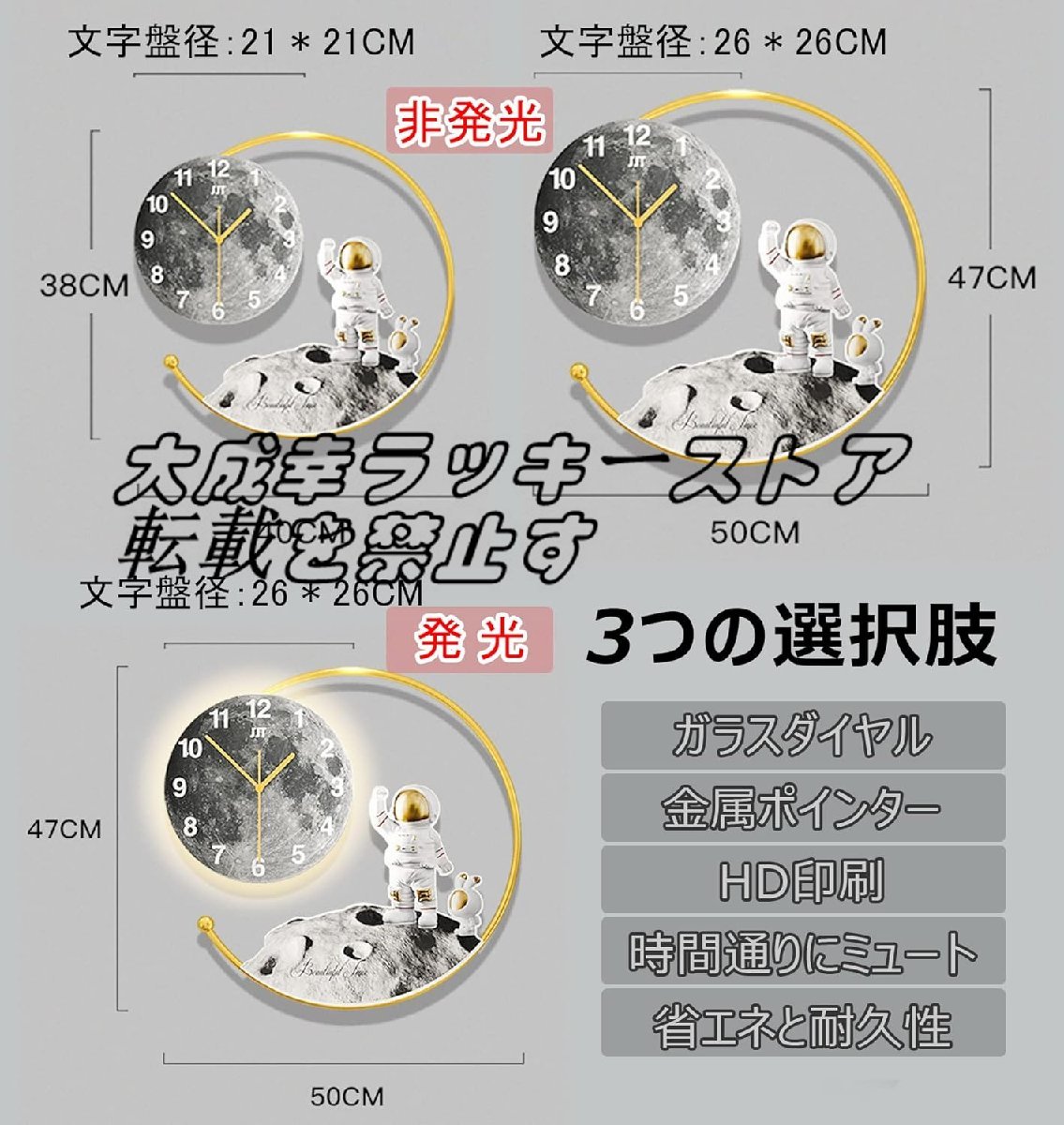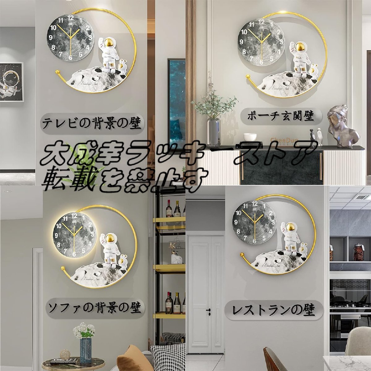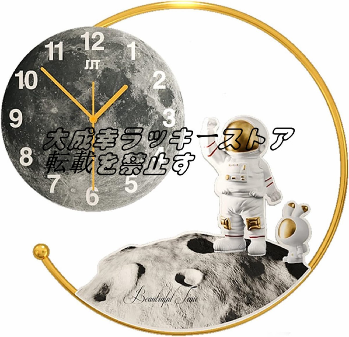壁掛け時計 掛け時計 宇宙飛行士 金属 ウォールクロック 発光 常夜灯 モダン シンプル 連続秒針 静音 装飾時計 クラスルーム 47x50cm z2400