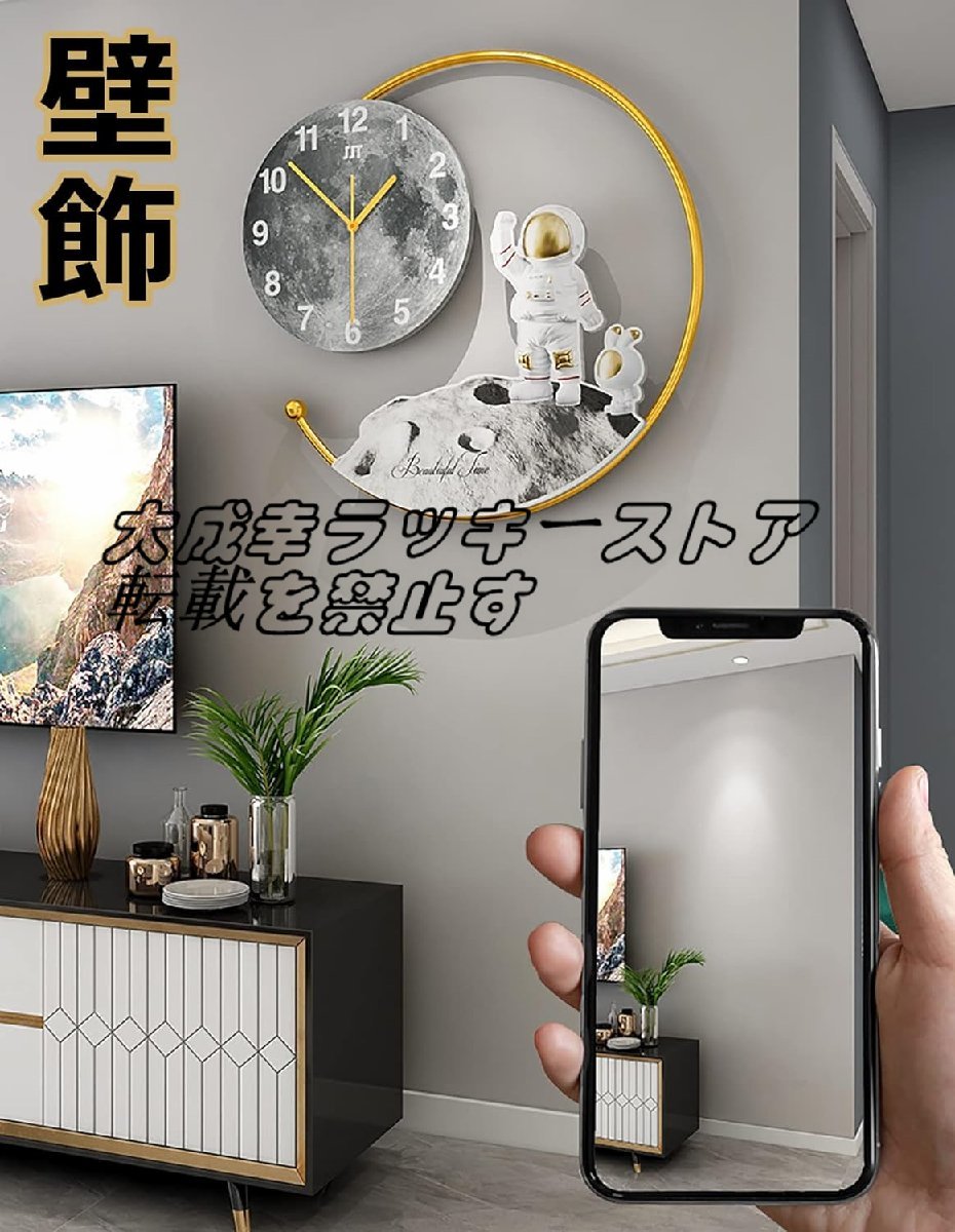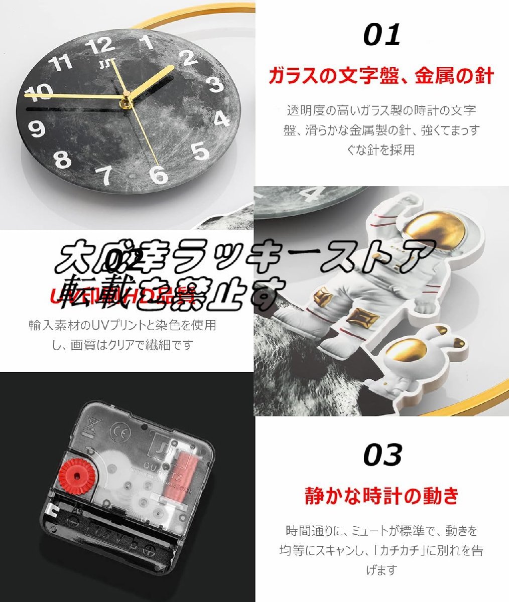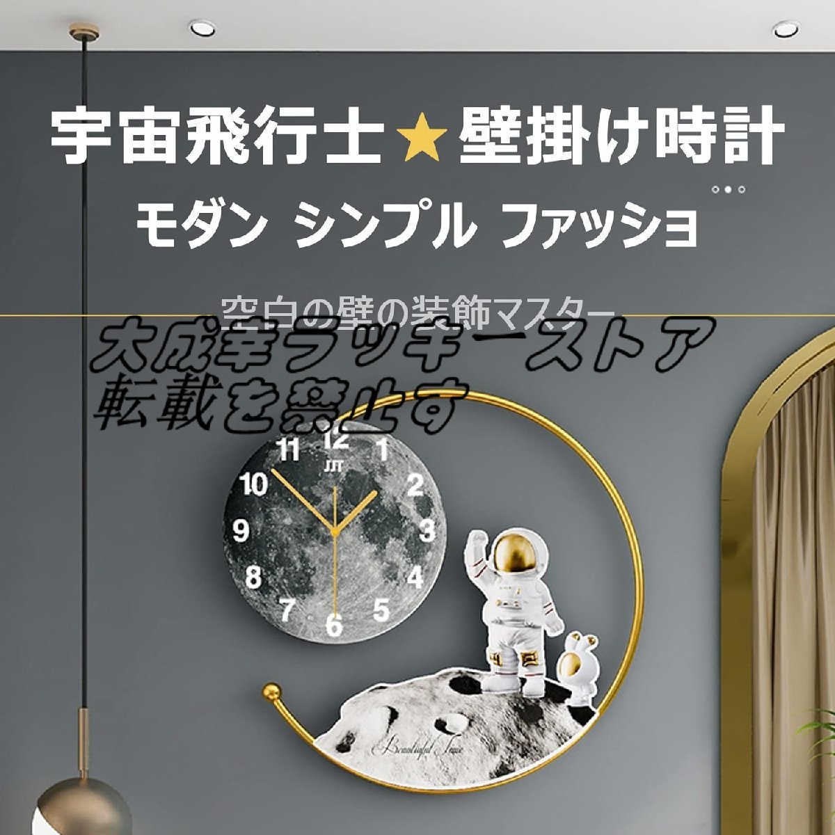 壁掛け時計 掛け時計 宇宙飛行士 金属 ウォールクロック 発光 常夜灯 モダン シンプル 連続秒針 静音 装飾時計 クラスルーム 47x50cm z2400