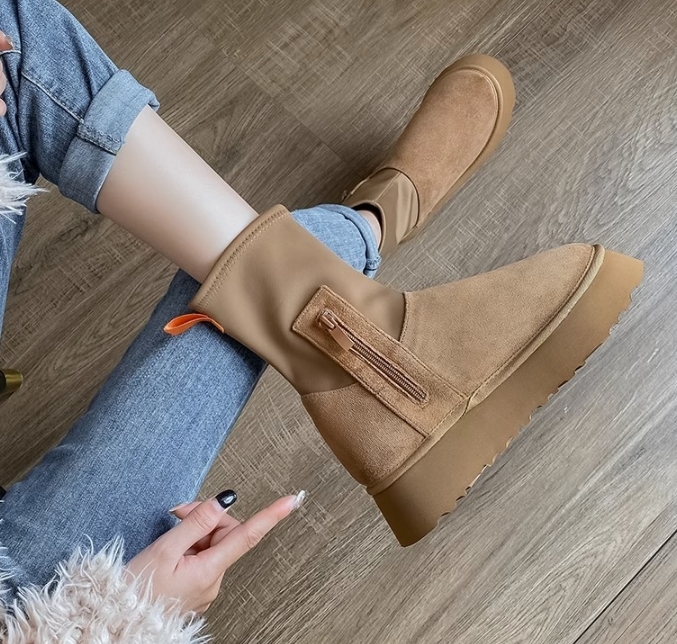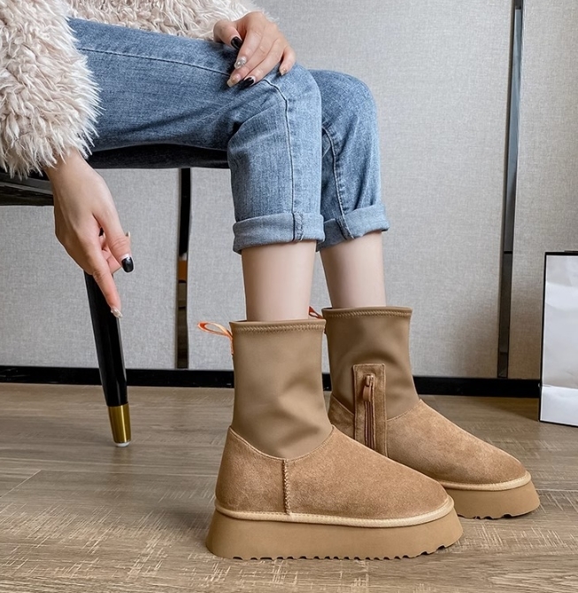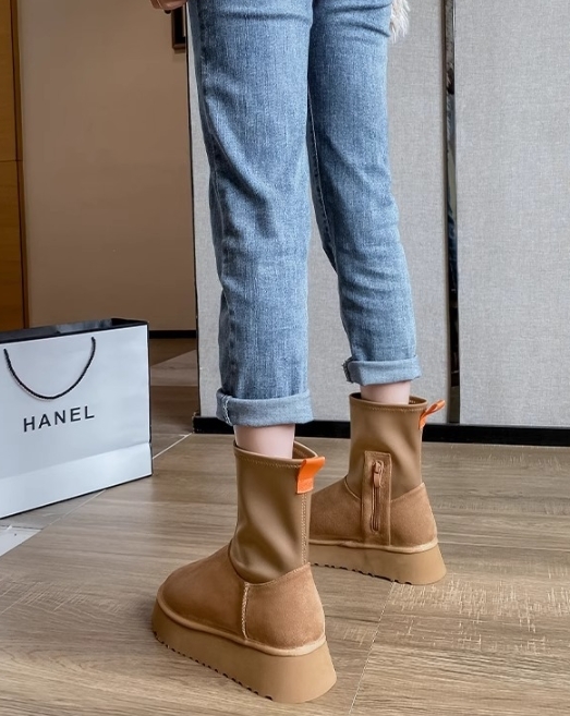 レディース カジュアル スノーシューズ 厚底 4.5㎝ 快適 防滑 スノーブーツ ショット丈 身長アップ X317